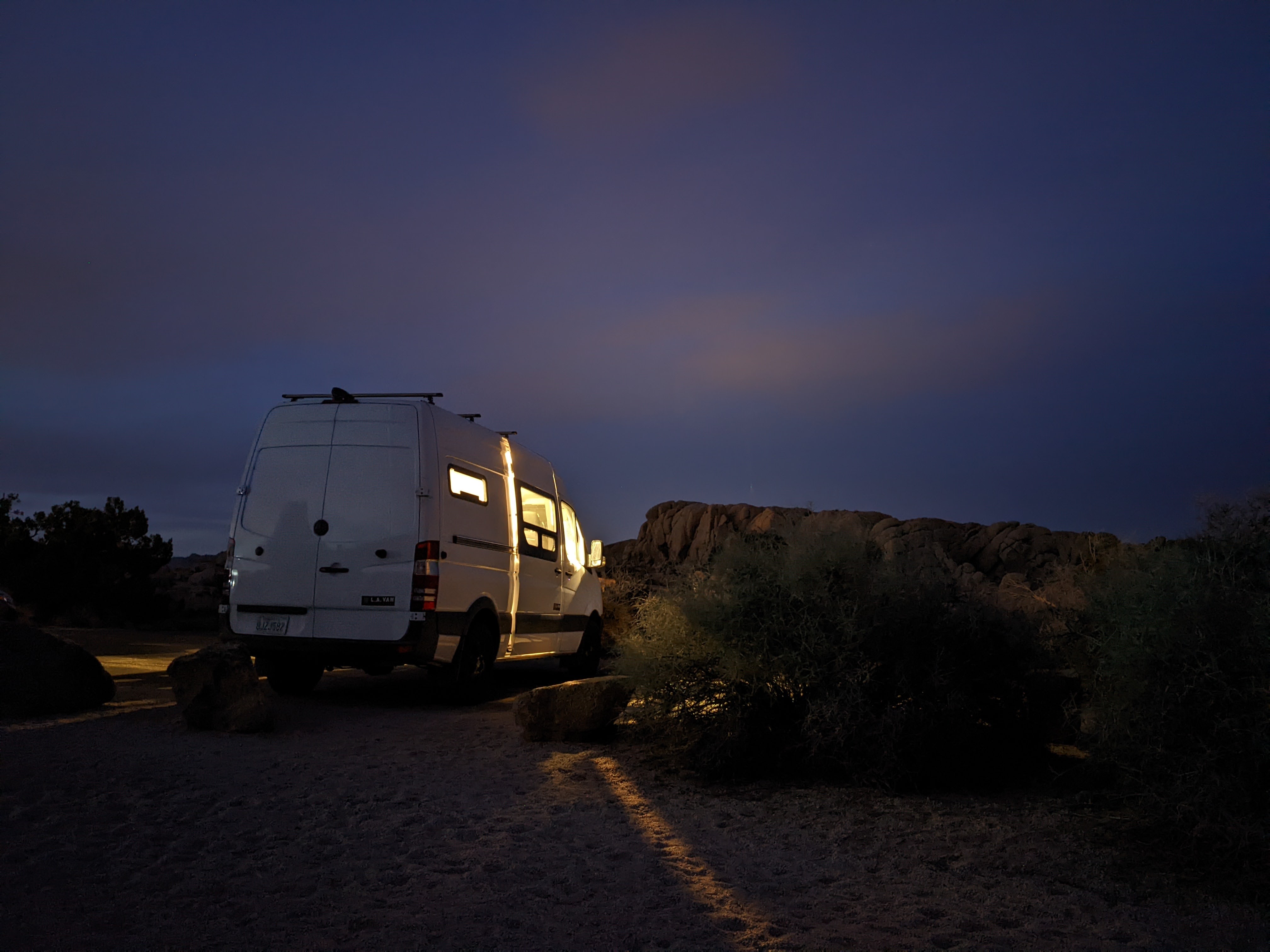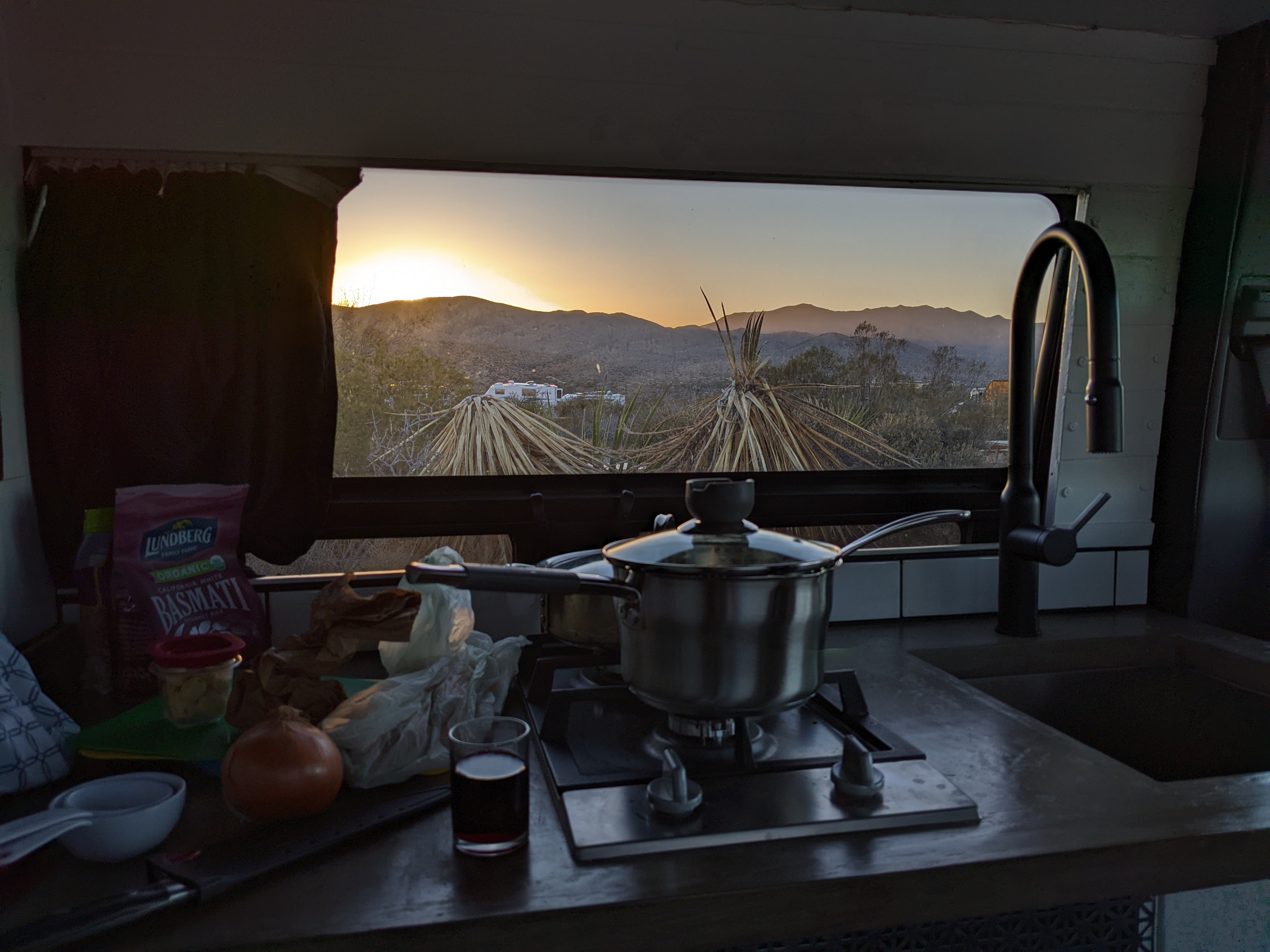 Second night in Cottonwood Springs, wide open sky, but a sea of RVs with generators blasting and parties rolling. Who are we to judge what these spaces are used for? But the sky that night – Milky Way rolling overhead, so many stars that the familiar constellations were drowned out and almost unfindable. We were in bed and asleep by 8:00.