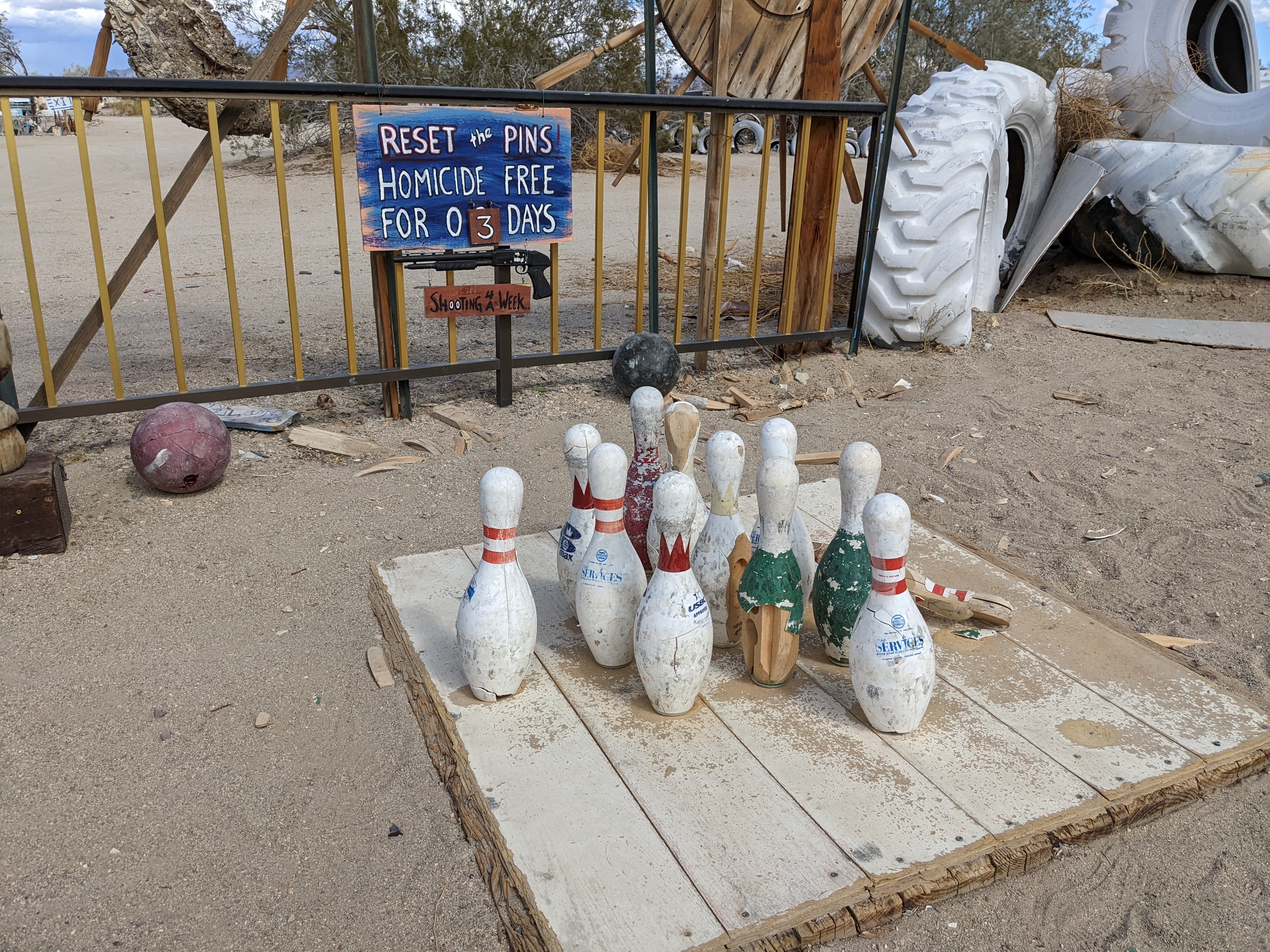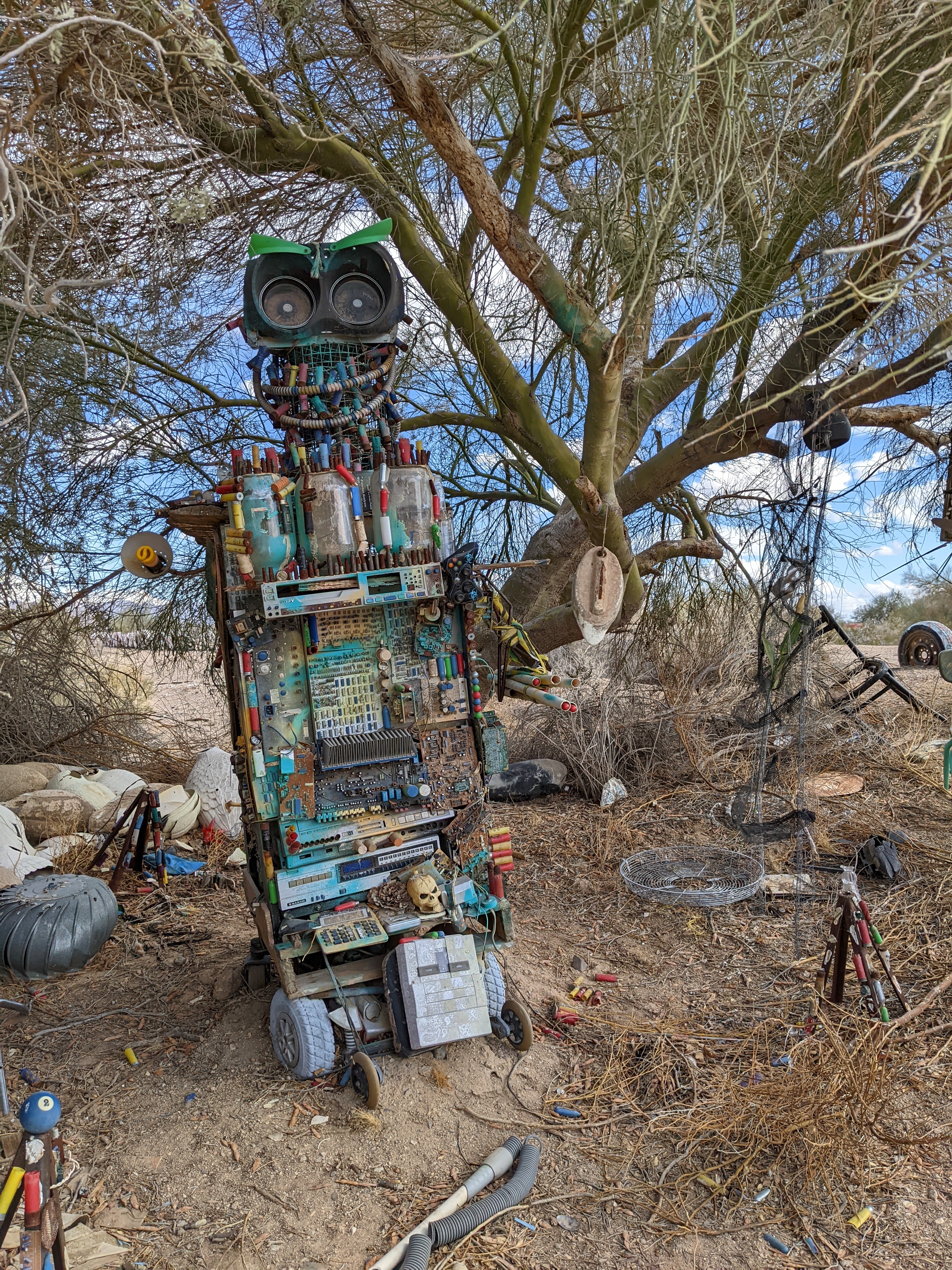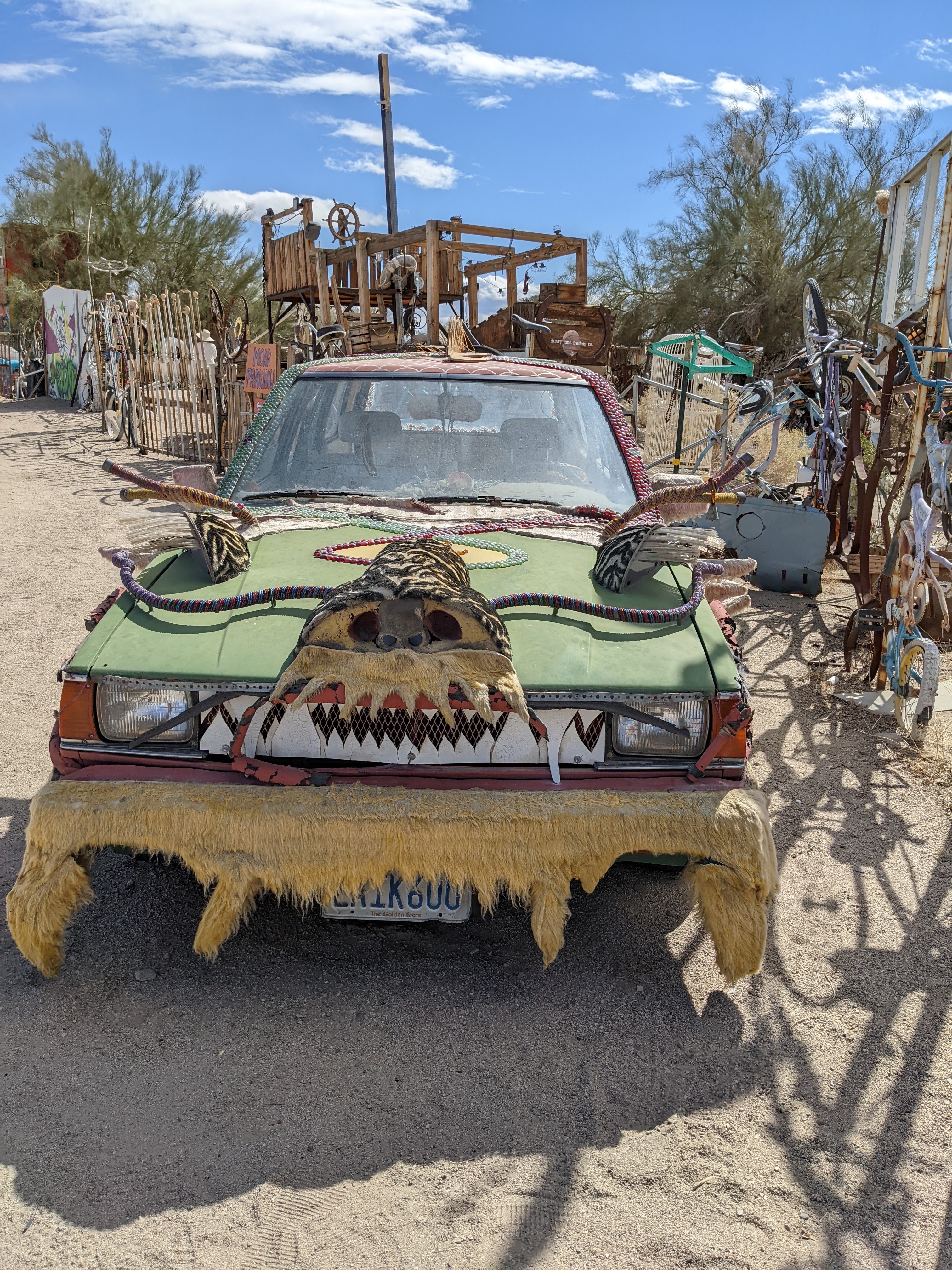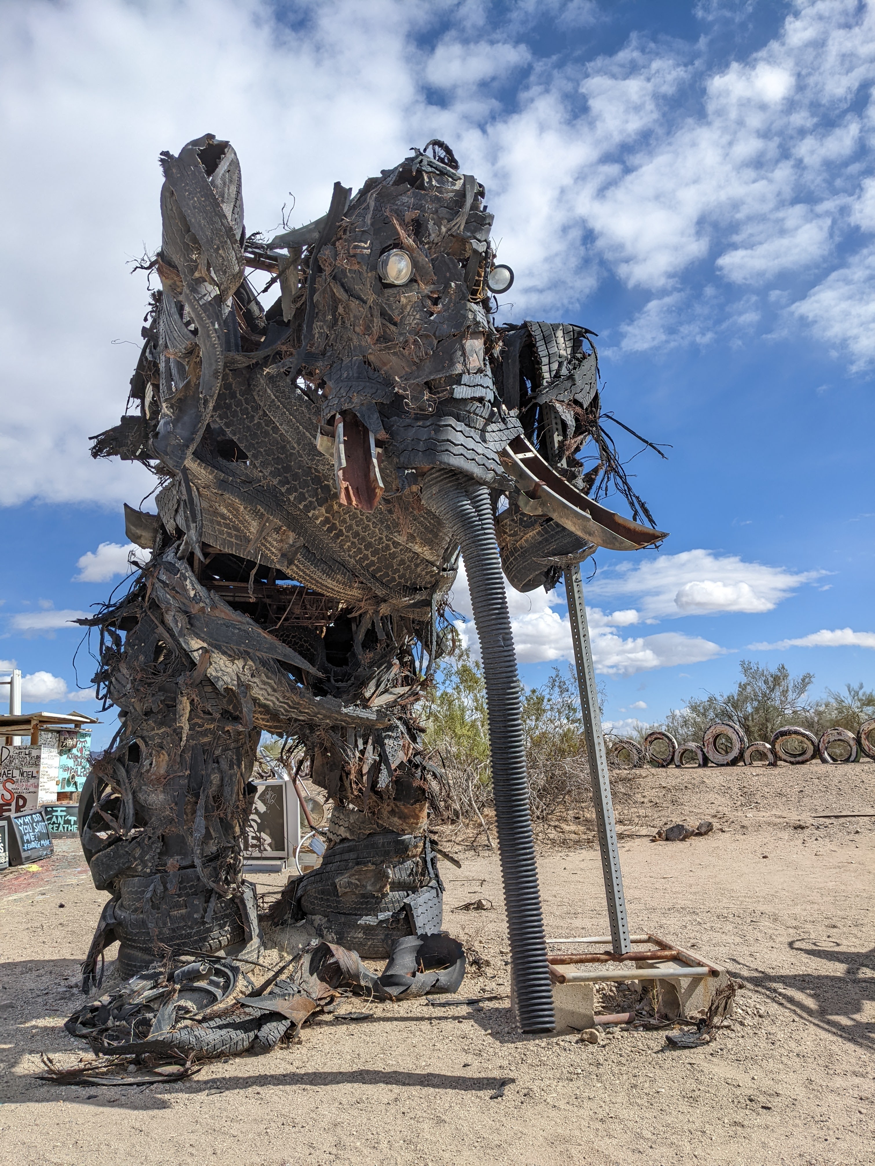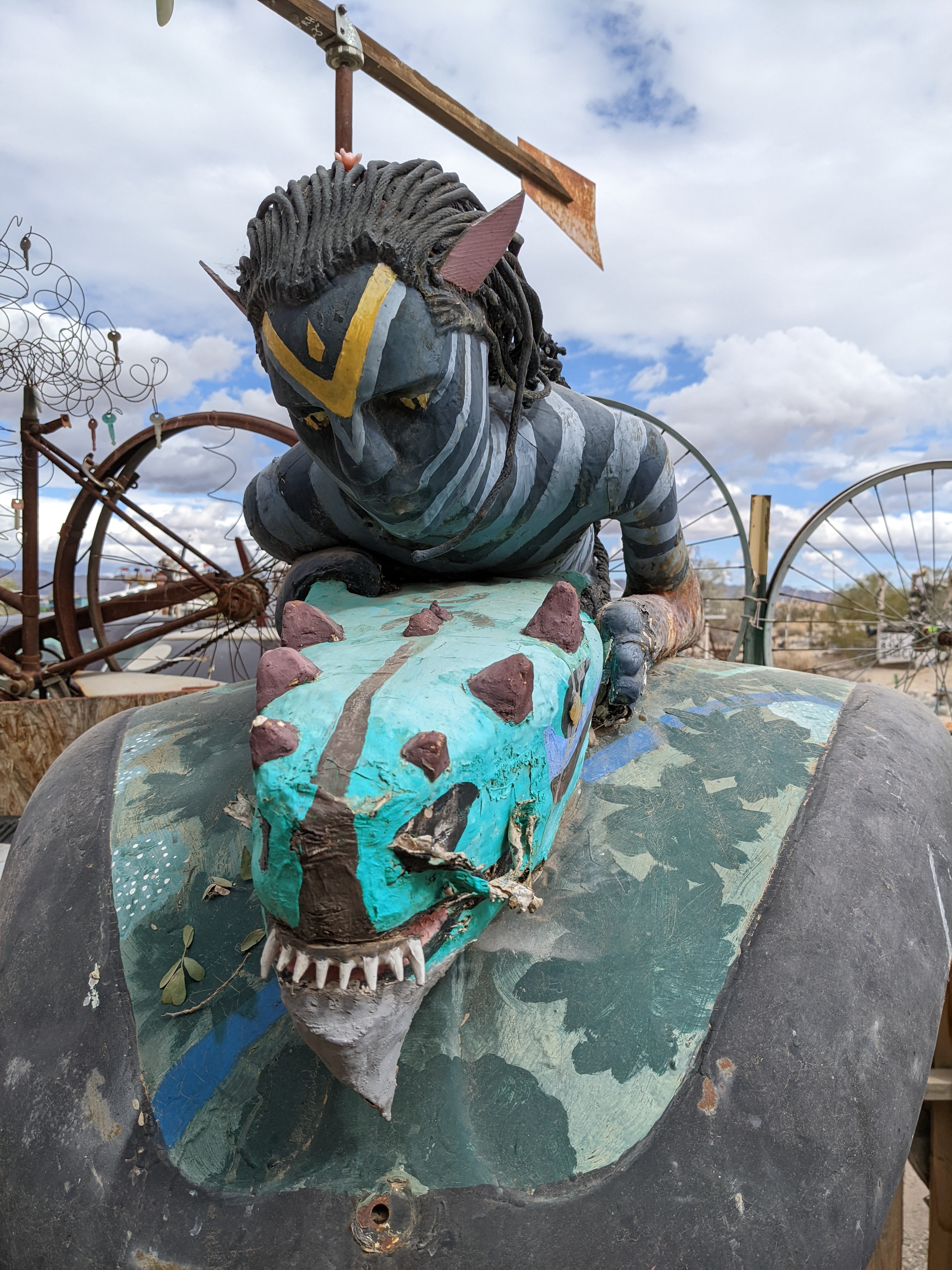 The former of these two is an art collaborative/commune at the north end of “the city.” We followed the signs and were greeted at the gate by a pretty lady with what can only be described as a unilateral hairdo who welcomed us and made sure we understood the ground rules of the place: 1) Please play on/around/with the art. 2) Understand that the art may be dangerous if played on/with/around improperly. 3) If we bleed on the art, it becomes a part of the exhibit, and we are now contributing artists. Oh yeah, and: 4) East Jesus takes Venmo and other contributions.