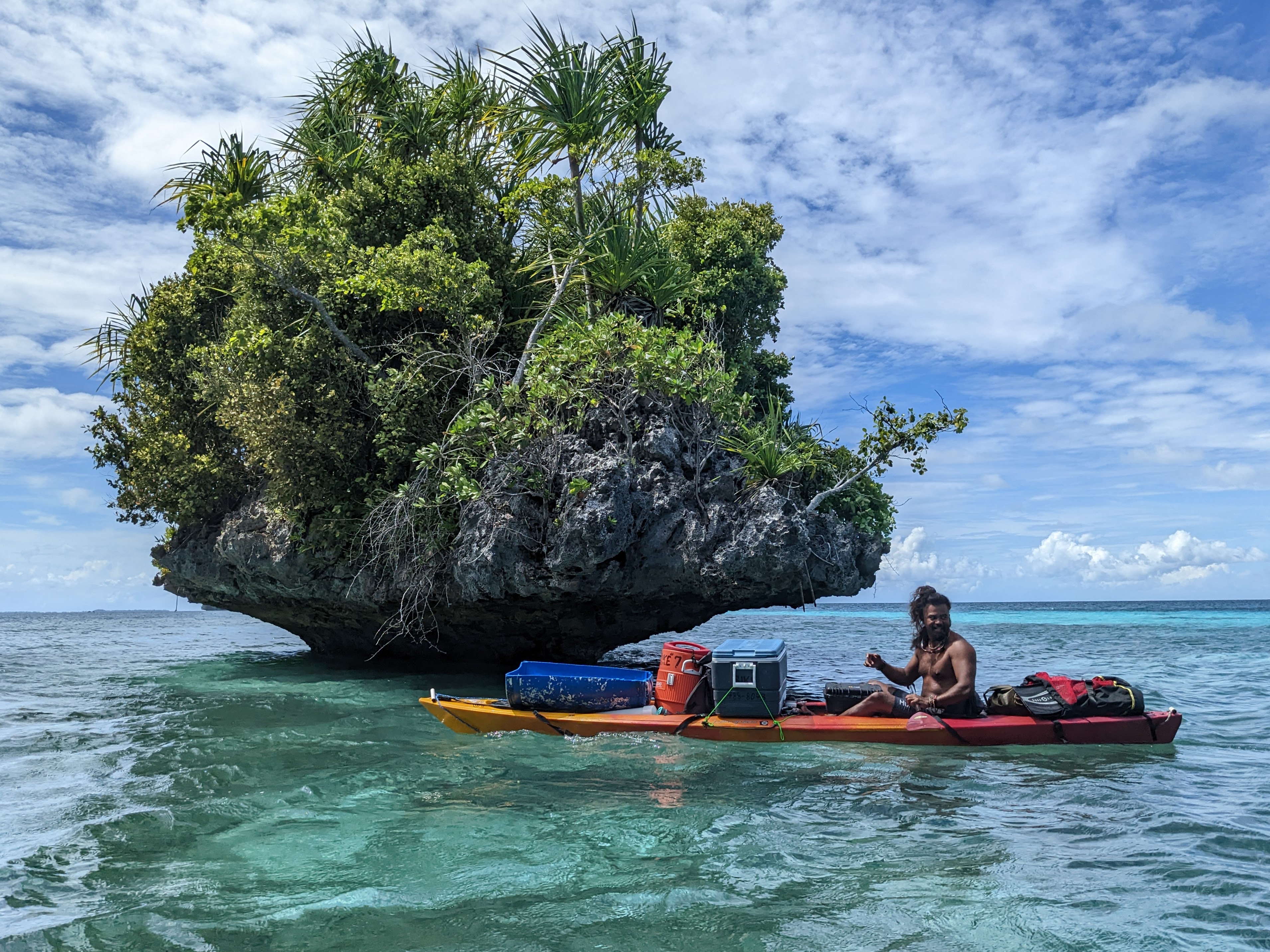 Maybe yesterday was when we paddled out to Pterodactyl Cove, this beautiful little two-beach cove, formed by one of the ever-present mushroom mini-islands just the right distance offshore from the main island. We pulled our kayaks up on the windward side, had an early lunch, and strategized how and where to plant our baby giant clams.