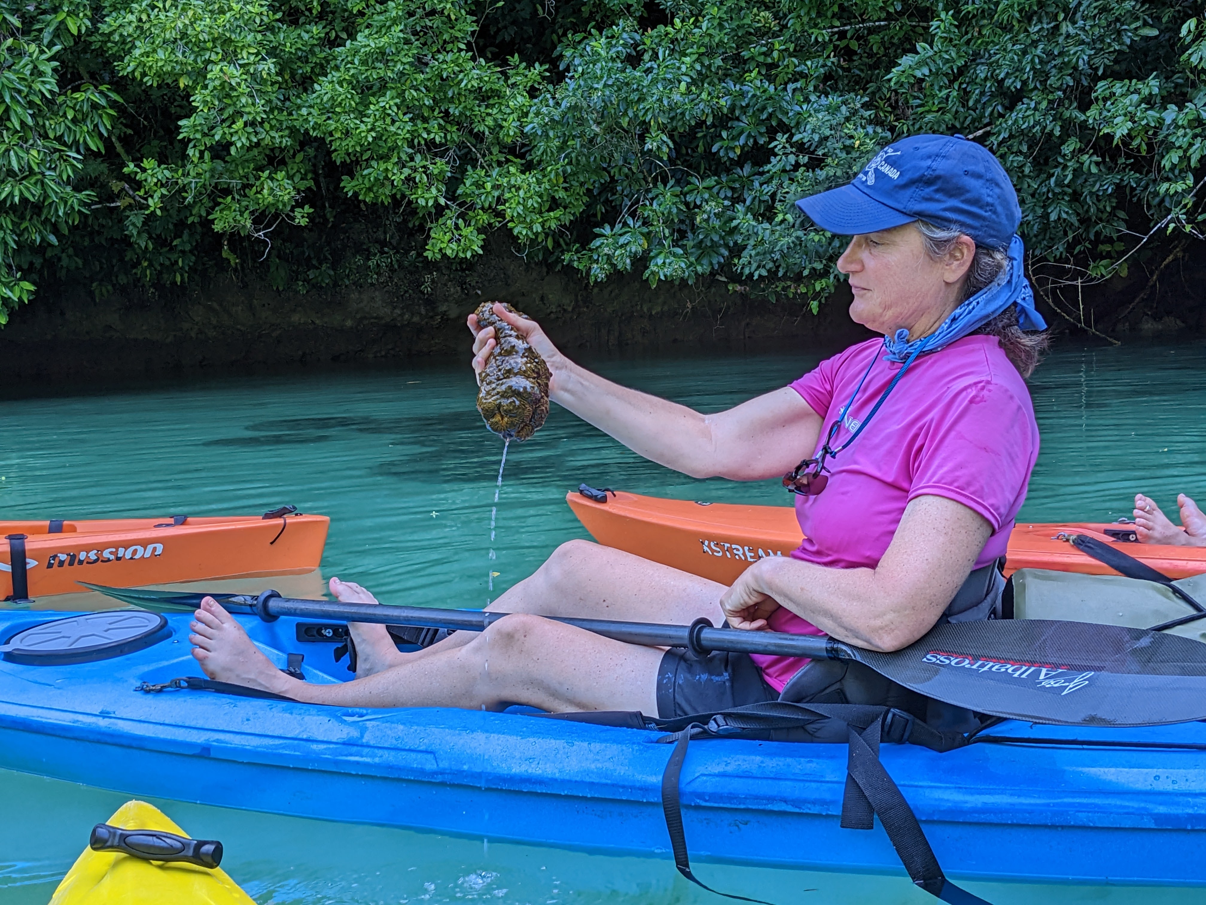 I think we’d just emerged from the mangroves when Mac scooped a sea cucumber the size of a butternut squash up from the shallows and asked “Anyone ready for a snack?” He handed it without explanation to Katie, where it proceeded to pee out its interior in a more than vaguely phallic transformation to flaccid blob. We watched and waited, a bit too nervous to ask what was supposed to happen next. “Got to wait until it’s all done,” Mac said.