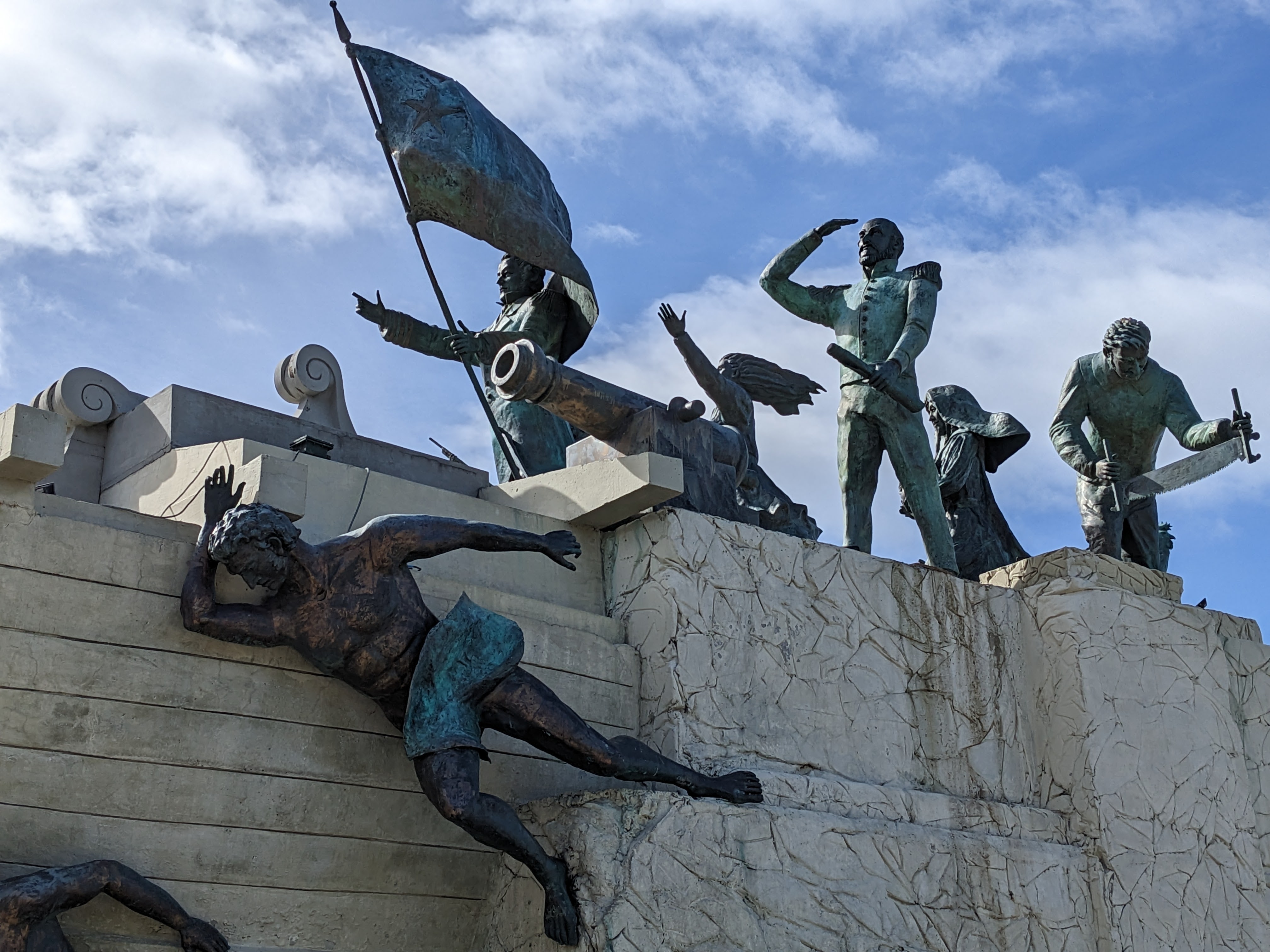 So I’ve been bundling up just a little when I set out on foot. Rarely with a real destination – PA isn’t really a tourist town with Sights To See. A couple of days ago it was out to Antoine de Saint-Exupéry Plaza, an arbitrary bit of green space in the median of Avenue Bulnes. But it took me past the cemetery, with its fantastically ornate mausoleums, and the old hippodrome. And the monuments you stumble across – there’s just so much outdoor sculpture here, sometimes with a plaque explaining what it is, sometimes not. The Monument to the Sheepdog, the Monument to Petroleum, to The Croatian Immigrants. And by and large (and they do tend to be large), they’re gorgeous, evocative pieces of art.
