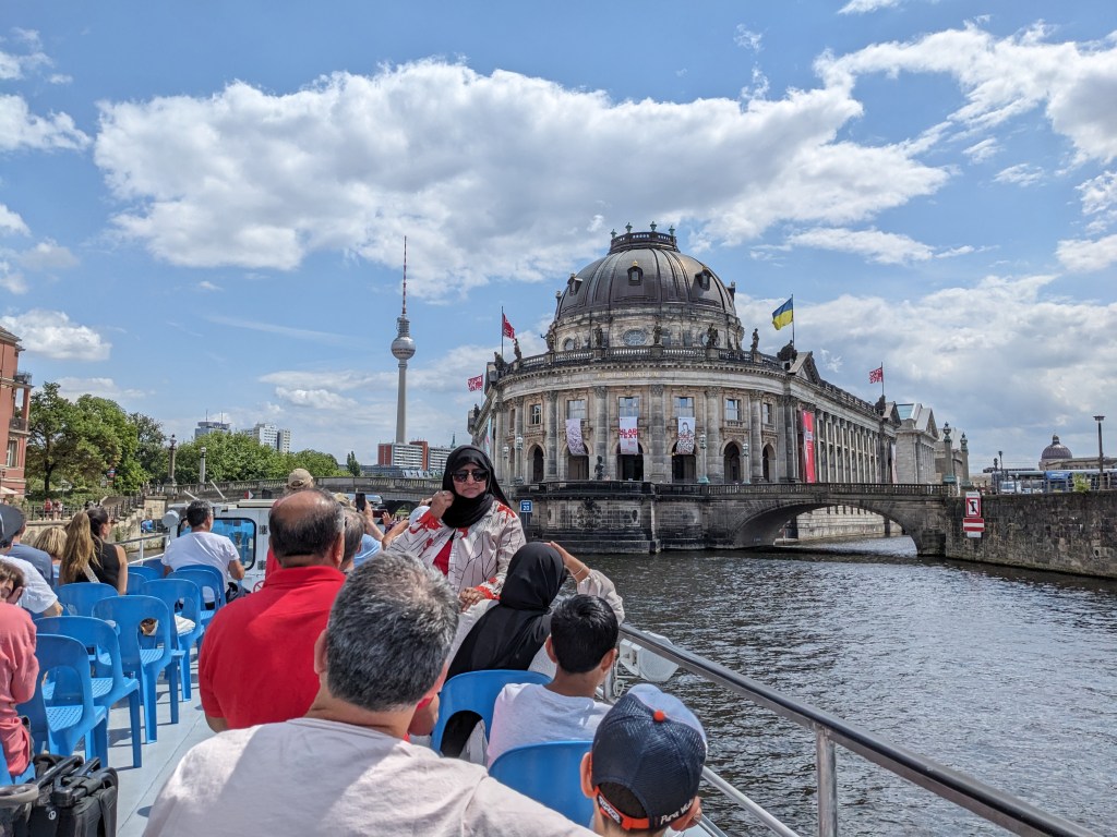 [Postscript: Berlin has failed to disappoint. The Pergamon Museum was breathtaking, with walls of Sumerian and Assyrian documents (including surprisingly egalitarian laws on divorce and womens’ rights), Gilgamesh tablets, temple engravings recovered from the Hittite city of Yazılıkaya and, most impressively, the Ishtar Gate from Babylon, reconstructed from tens of thousands of glazed fragments of brick. From there we walked – my family seem to all be serious walkers – to and around Friedrichstraße before kicking back for the promised boat tour up and down the Spree.