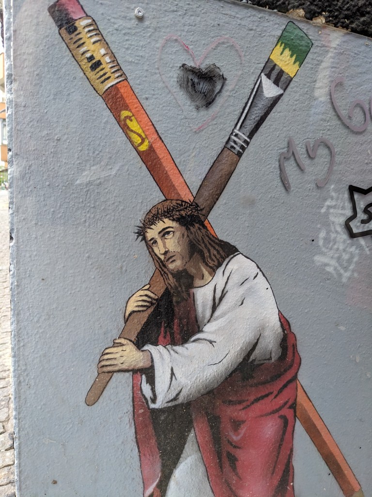 Other turns took us to Bülowstraße, the faces of its buildings anointed with breathtaking street art, and Nollendorfplatz, apparently Berlin’s traditional gay neighborhood in the middle of some sort of Pride fair.