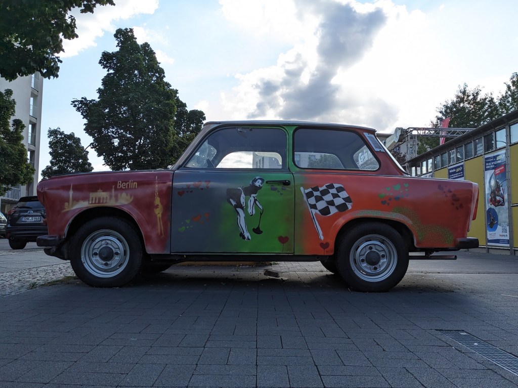 This being Berlin, the result is predictably unpredictable. Two blocks from where we’re staying, choir music summoned us to…a sidewalk runway fashion show? Around the corner from the Disneyfied-but-still-obligatory visit to Checkpoint Charlie is a museum dedicated to the much- (and apparently justly-) maligned Trabant, along with a site where you can apparently rent one to drive around town. Pass.