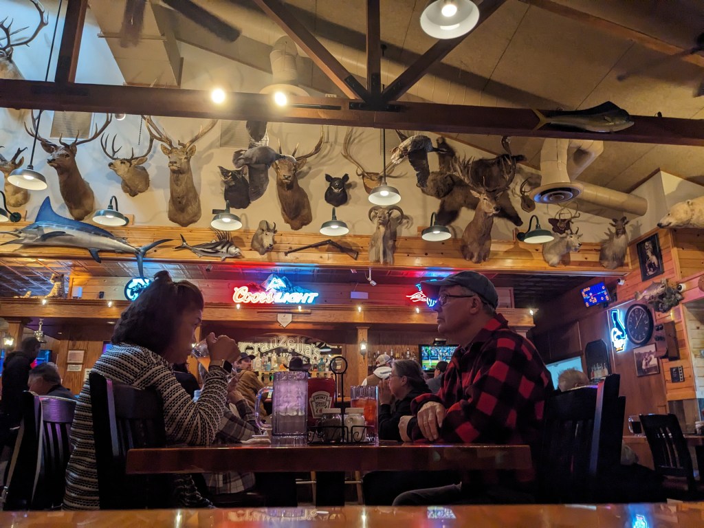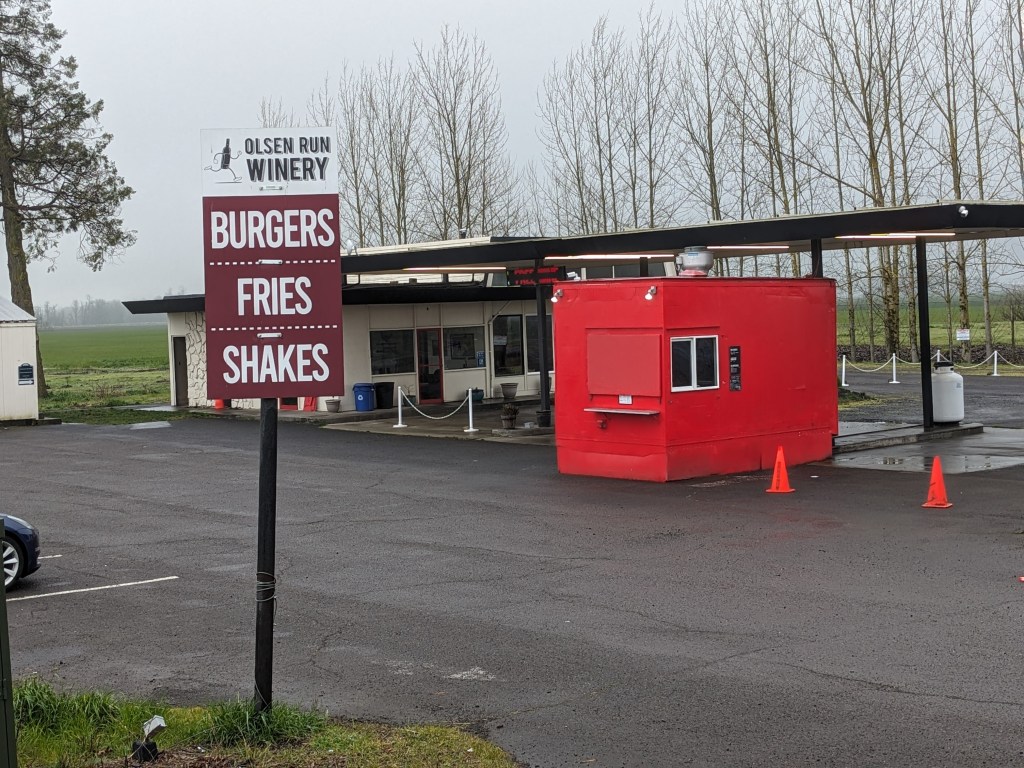 Honestly, I don’t remember half the stops we made. We talked the whole way, following the little blue line on the car’s screen, keeping half an eye on the “charge remaining at destination” estimator, which invariably crept lower as each leg progressed. There was the Italian diner populated by big hats and adorned with the mounted heads of pretty much every mammal I could name in North America (and a sizable fraction of Africa on the opposing wall). There was “Wine Tasting, Burgers, Shakes and Fries” at a repurposed truck stop half past Oregon. There was pelting rain in the passes and great big gobs of snow chasing us north to the Willamette Valley. Somewhere short of Portland there was a semi with a legless Halloween skeleton clinging to the loading doors. I’m sure there was more, that I’ve forgotten because I didn’t have the presence of mind to pull out the camera, but we…saw stuff.