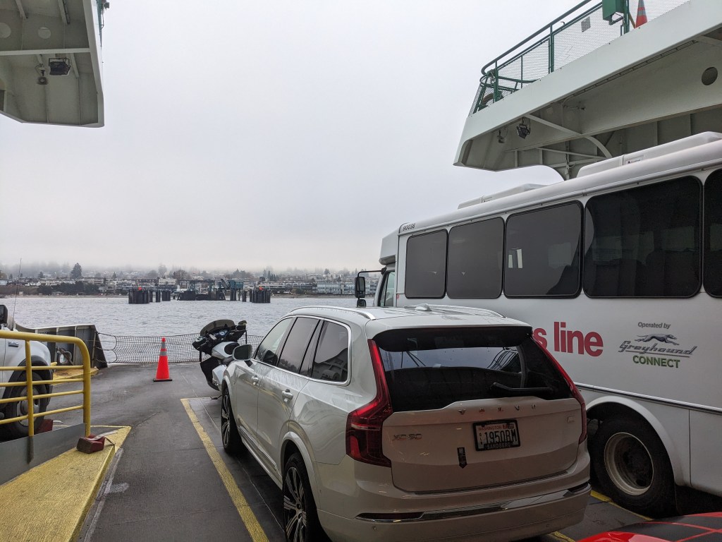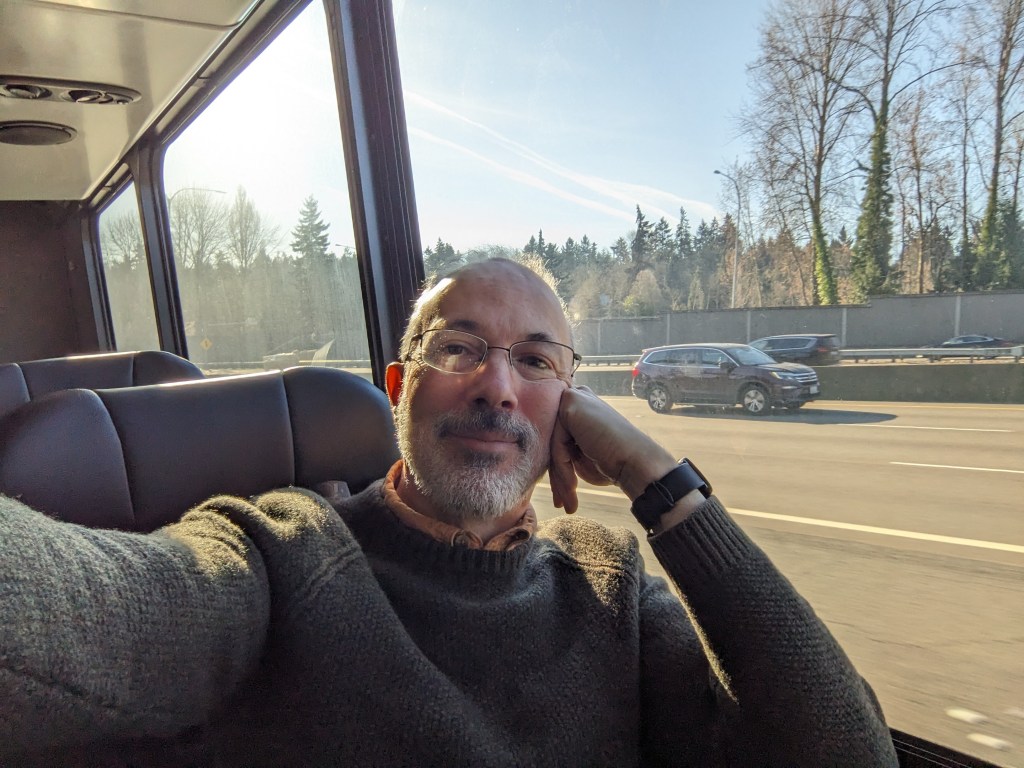 So far, though, I’m leaning toward ironic. I’ve had less auspicious starts to trips, but this one has had more than its share of hurdles, just getting to the literal starting gate. Mind you, the ride down from Port Townsend was as delightful as ever, with our favorite bus driver ever – thank you, Eugene! – greeting me by name and asking when my darling better half was next going to grace his route.