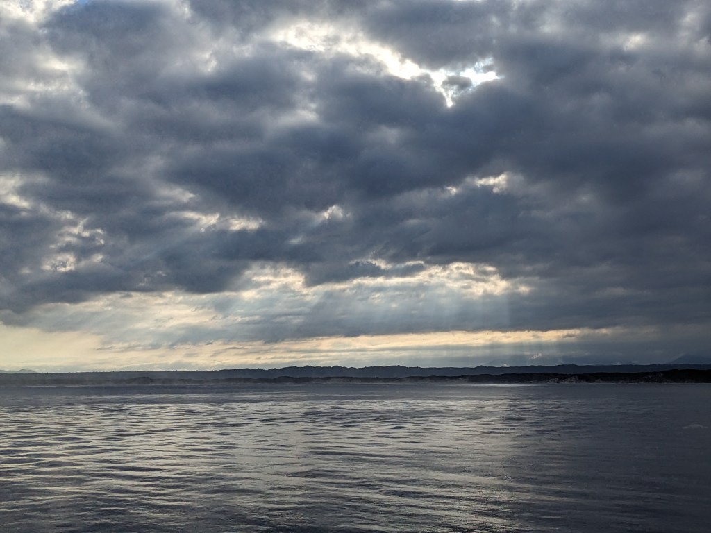 So. The wicked storm that had been rallying out in the Indian Ocean finally decided to make its move. It didn’t seem like a bad idea to spend the night indoors when it made landfall, so consulted my maps and figured I could get my day’s perambulations in and still make Stanley before things got ugly. Did, and did.