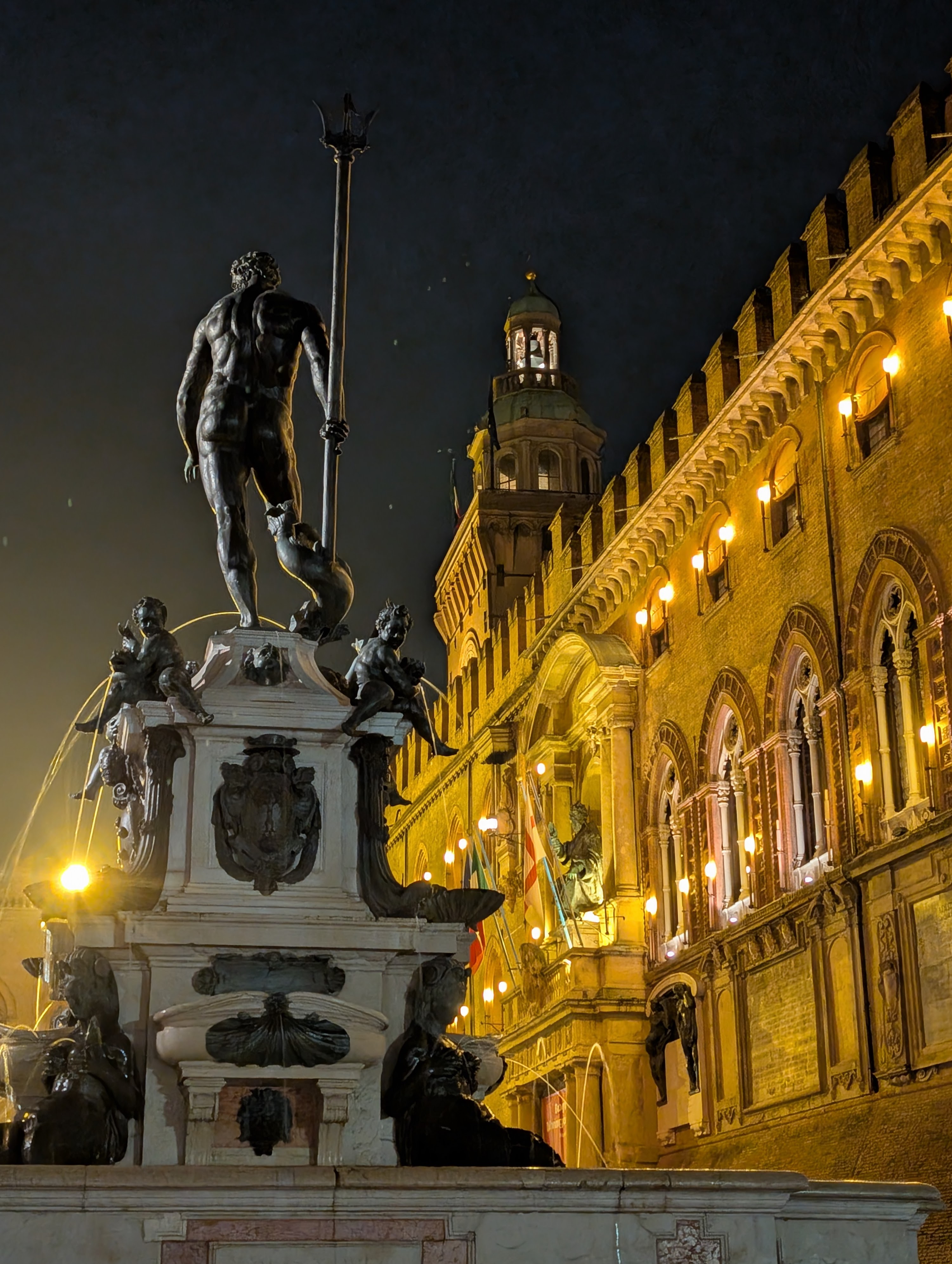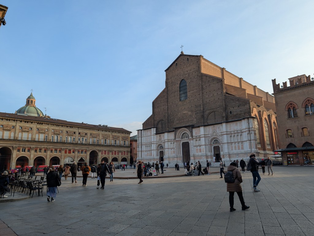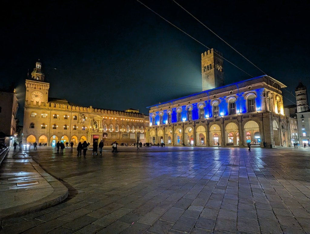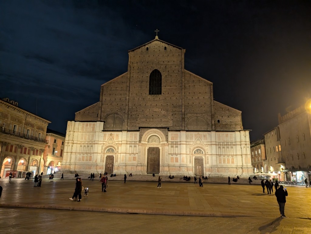 There were the obligatory stops at the Palazzo Maggiore – the central square – by day and night, and the city’s two iconic and photogenic leaning towers. The latter had been open for climbing until recently, when structural analysis revealed that at least one of them had reached “critical lean” and might require heroic efforts to prevent it from toppling altogether. Naturally, wild recriminations are flying left and right over who is to blame.