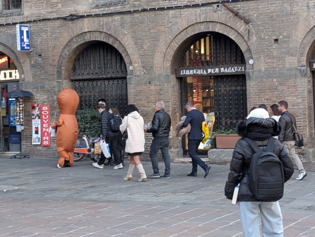This encounter set the stage fairly well for my roughly 36 hours in Bologna. I wouldn’t go to the length of a Monty Python proclamation (“Let’s not go there – it’s a silly place”), but Bologna struck me as a city with an unexpected sense of humor. It felt, for lack of a better word, playful.