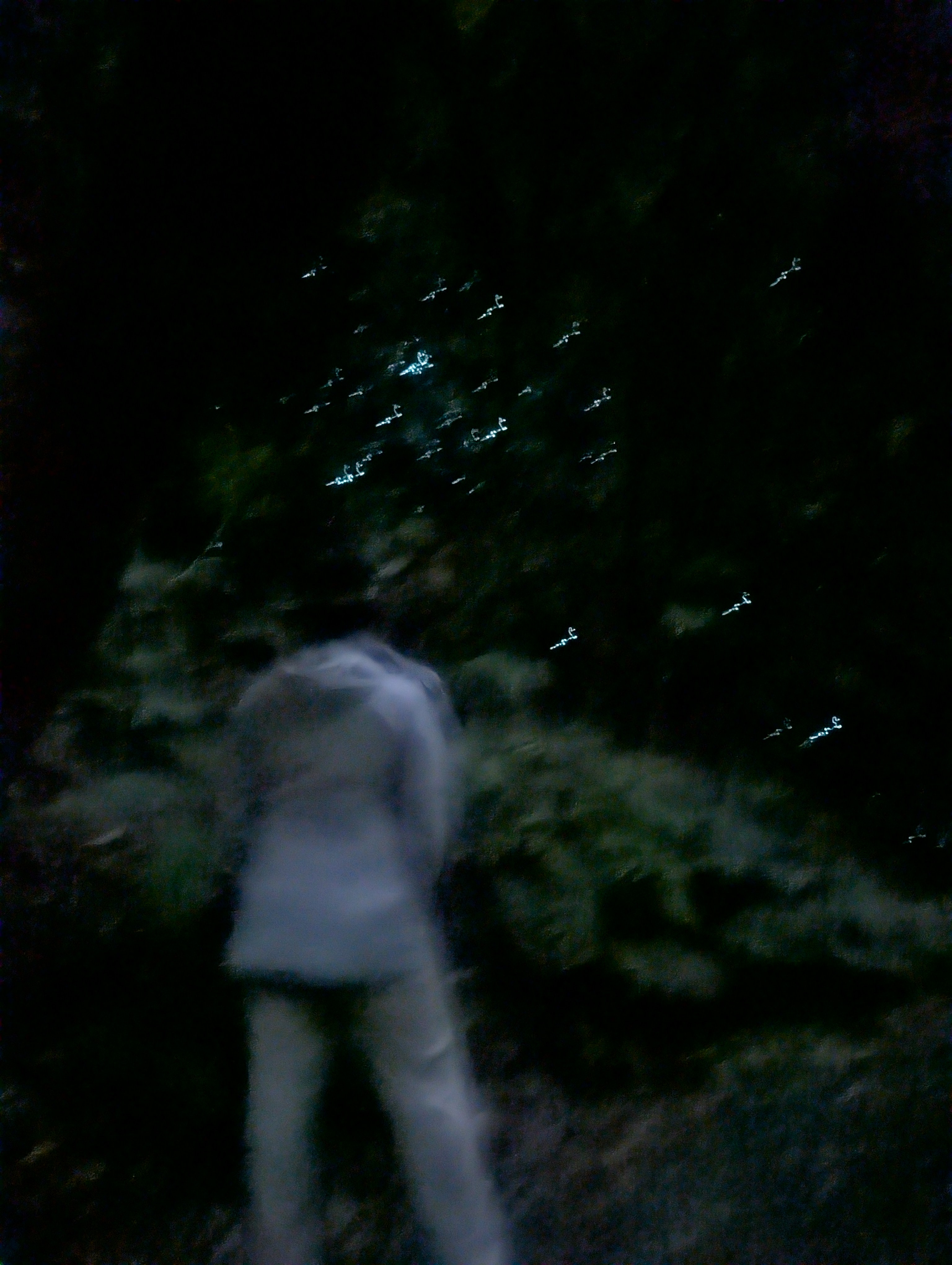 Sure…wandering into the bush at night… But we checked our maps, pulled out our headlamps and, after driving back over just after sunset, lit out into the bush to go a-huntin’ in the dark for glow worms. The well-defined path wound around corners and up and down the sides of the river valley, as well as straight through a few little caves of its own. And there were glow worms – sometimes a swath of them on a dark hillside, sometimes just a few peeking out from the foliage like watchful forest spirits.