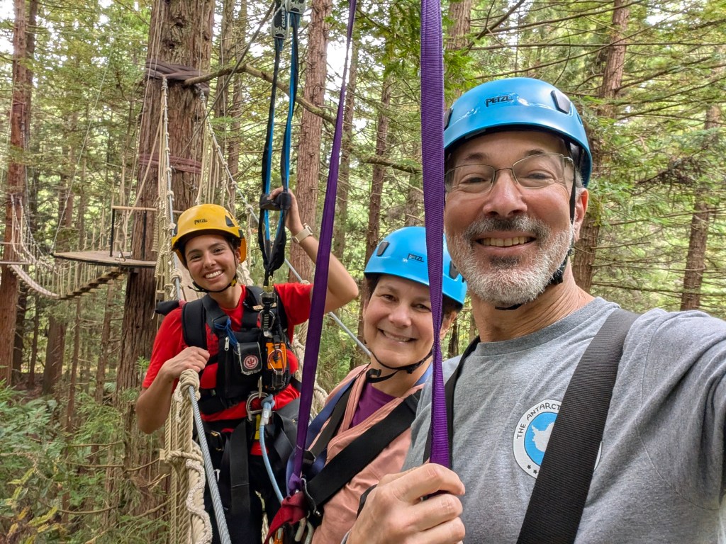 All in all we were up in the trees for about two hours, guided by Michelle and Scott, who interspersed our getting-from-here-to-there instructions with a gentle and informative introduction to the biology of the canopy. Great fun, two thumbs up, would recommend to any visitor.