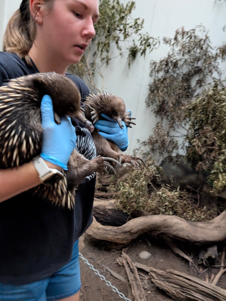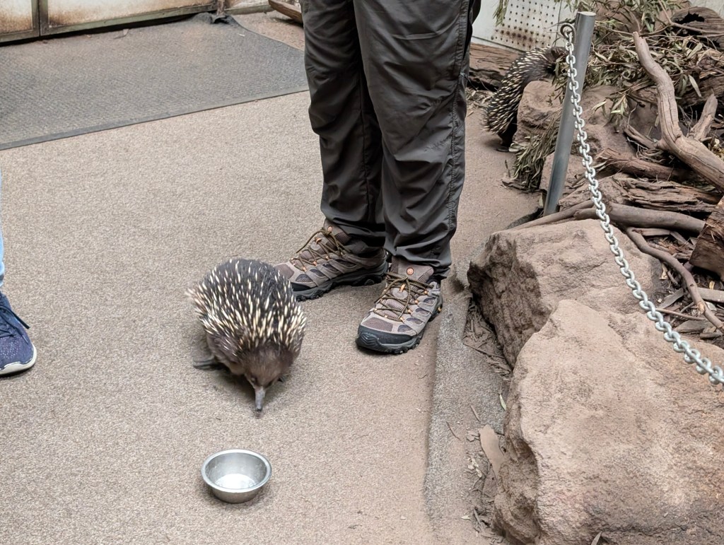 And! And as a bonus there was “the echidna garden.” Now, I don’t know about the “garden” part, but we got to hang out in a partially vegetated room while four of the incongruously cute little spikeballs waddled around, poking their tongues into bowls, under doormats, and everywhere else they could looking for treats.