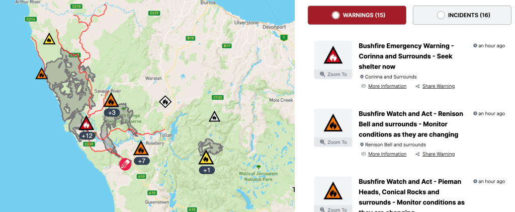 But I’m two days behind now. This morning we’re in Strahan, out on the west coast, preparing ourselves for a boat cruise up the Gordon River. In what is forecast to be driving rain. Which is okay, in the grand scheme of things. After yesterday’s driving rains, west Tasmania is now firmly in “Not Currently On Fire”, territory, which is more than anyone could have said yesterday morning.