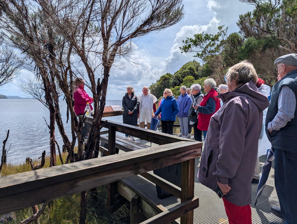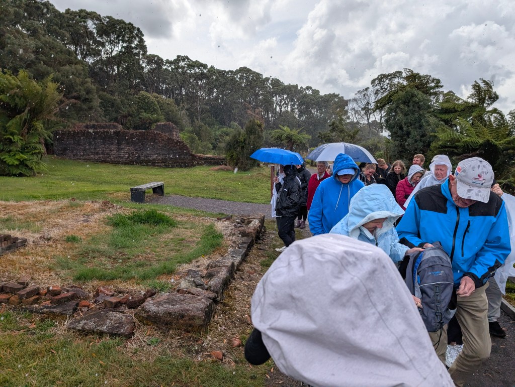 As I said, the weather did break a couple of times, if only to lure us into a false sense of safety. It dried up nicely when we made Heritage Landing, and stayed dry(ish) until halfway around the loop, when Boom. And again on Sarah Island: glorious sunshine for a couple of minutes until we were fully disembarked and halfway across the island. Then, Boom – down came the hail with a vengeance.