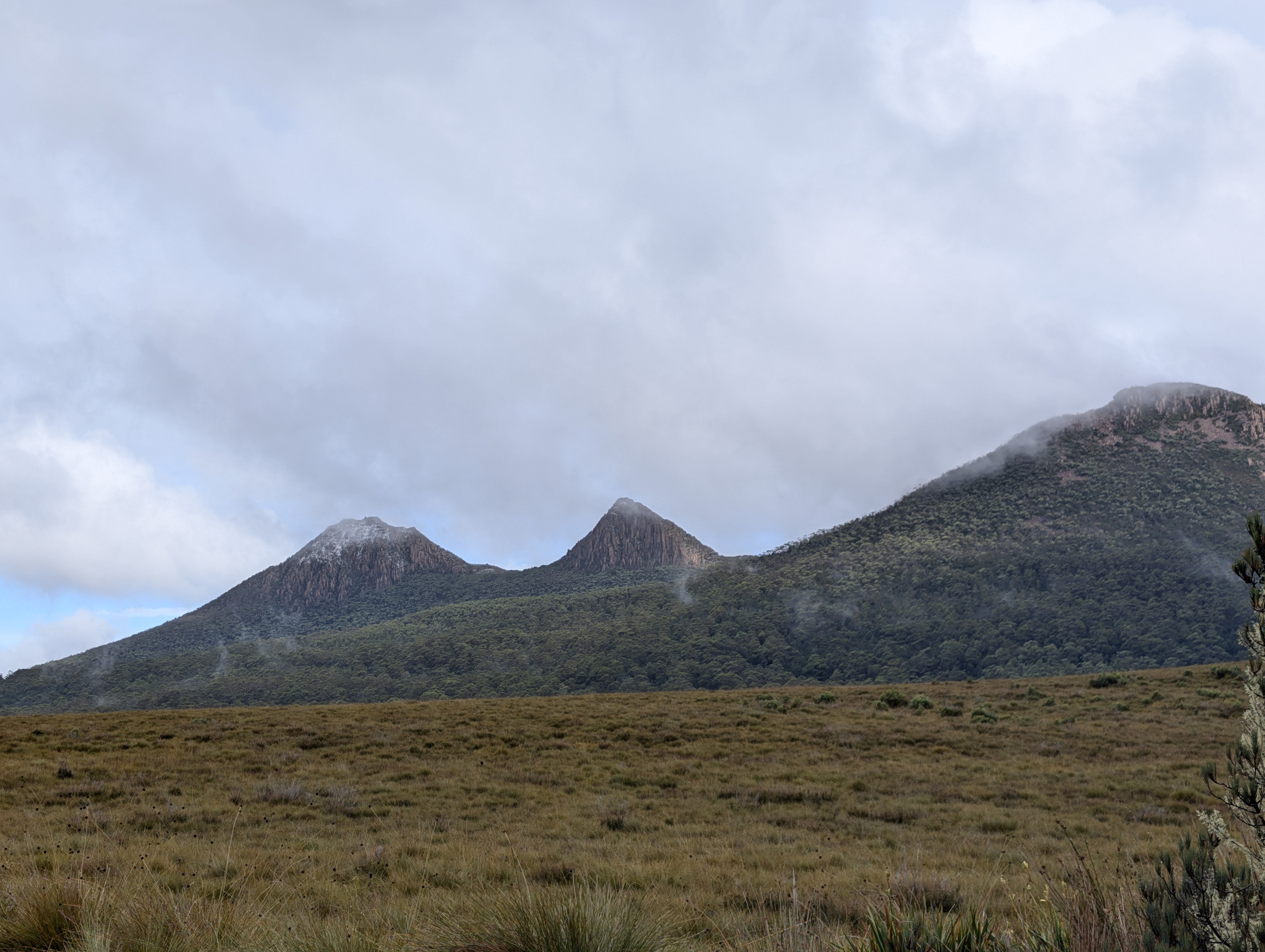 The new plan we’d settled on last night was to take Ann and Jack (Launceston friends) up on their invitation to visit them at a place on the east coast where they tend to spend weekends. A chance to see the fabled beaches, and dip our toes into the Tasman Sea, if we can handle the temperatures. But we couldn’t leave the Central Highlands without ducking into the bush at least a little.