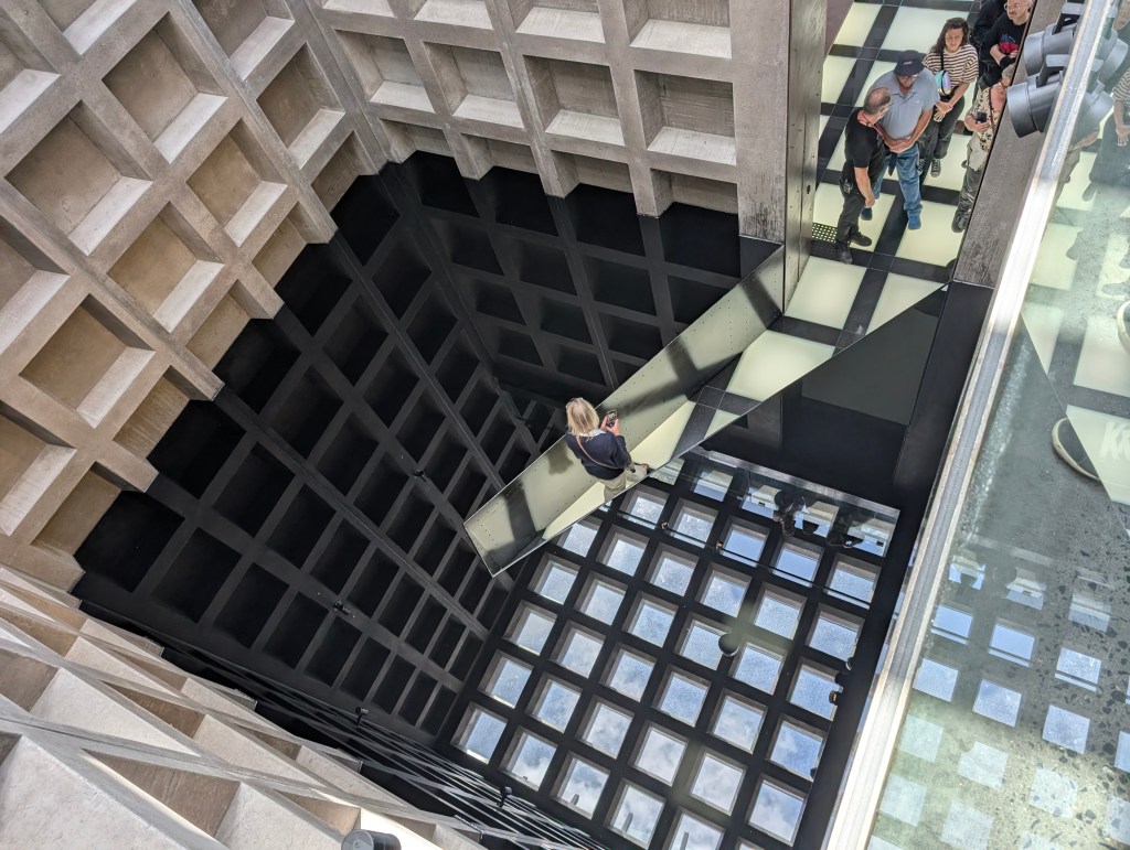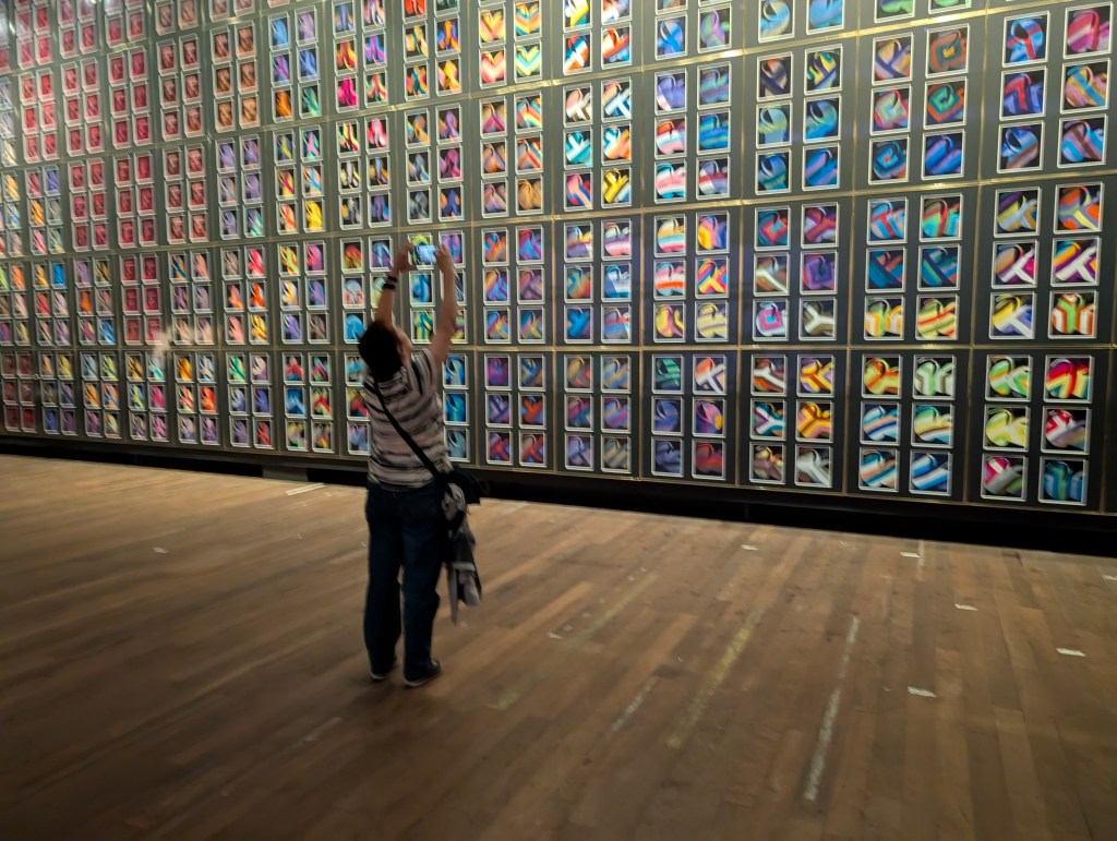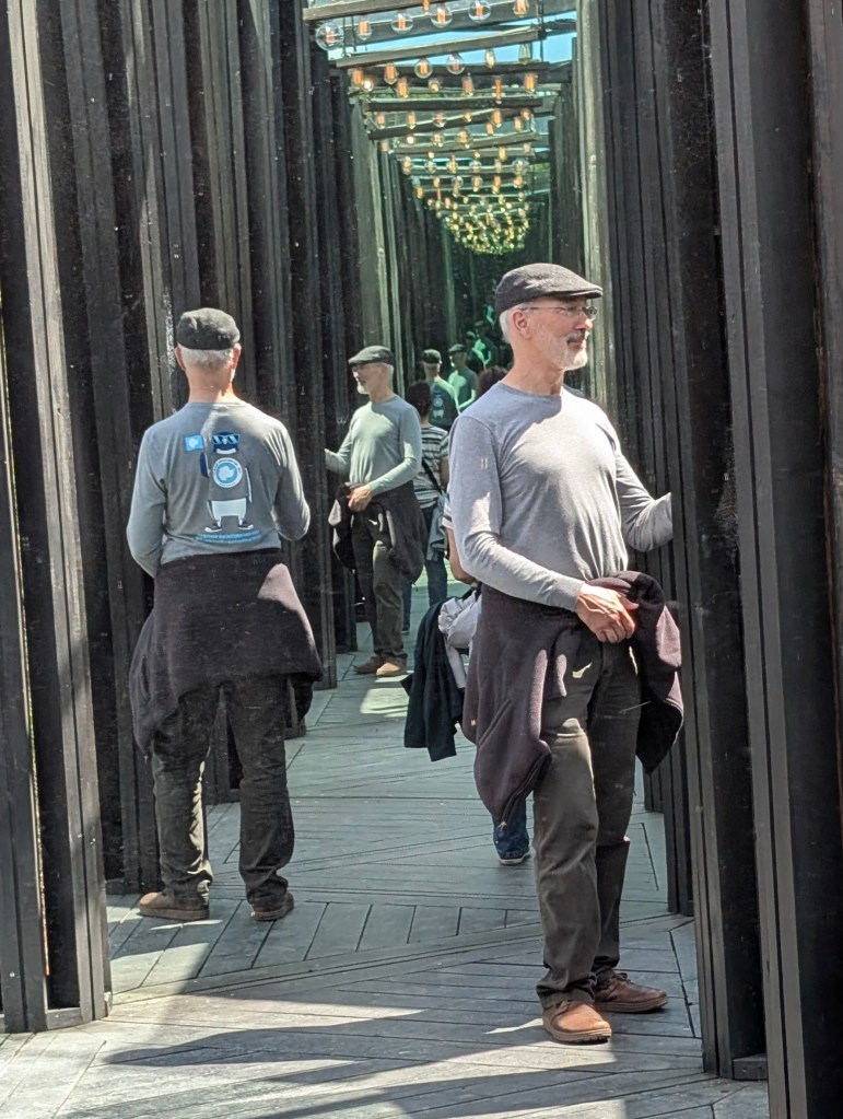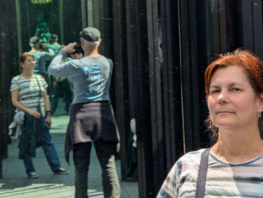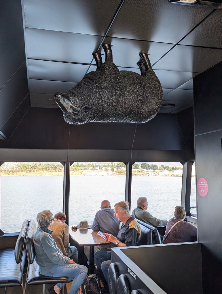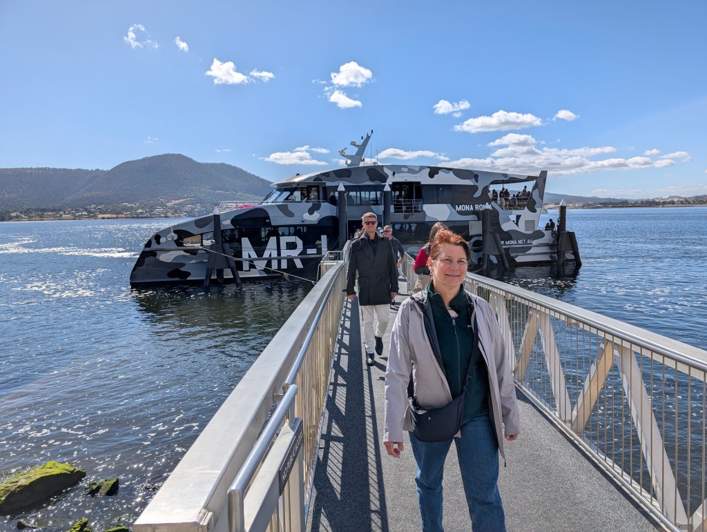 Then back down to Hobart the next morning to catch the ferry off to MONA, the Museum of Old and New Art. I wrote about visiting MONA last time around, so I won’t add anything here, other than mentioning a couple of new exhibits, including a trippy outdoor hall of mirrors, and one that made you feel like you were walking into a narrow dry channel amid a shoulder-high flood of motor oil. Yeah, MONA.