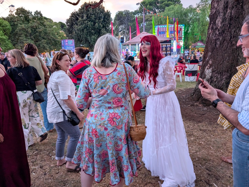 Fringe was, well, fringey. There were a dozen or so venues around the City, but we mostly stuck to one close to our hotel, the carnivalesque “Garden of Unearthly Delights,” set up in Rundle Park. The festival was just starting, and many shows were still in preview, so we were able to get tickets for pretty much anything our hearts desired, and popped for tickets for a couple of shows every night. Magic, stand up comedy, circus, cabaret, a surprisingly inspiring and moving Kate Bush tribute. Also something that, quite accurately, was billed as “Sh*t-Faced Shakespeare.” It was, as Brits say, pretty much what it said on the tin: a reduced cast of actors ostensibly trying to stage “Midsummer Night’s Dream” while one of them was genuinely sloshed. Some acts…worked better than others.