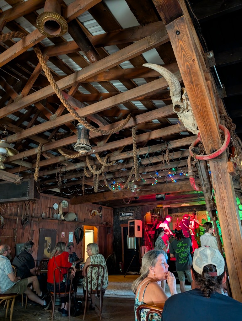 In short, it was all I’d hoped for: moose antlers and dogsled runners hanging from the ceiling, peanuts on the floor, a timeworn wooden bar, and footstomping tunes from “Raisin Holy Hell” at the back of the room. And a panoply of tie-dye-and-Carhartt revelers stomping the boards to old-timey string band renditions of Sublime’s What I Got, and the like. Pure Fairbanks.