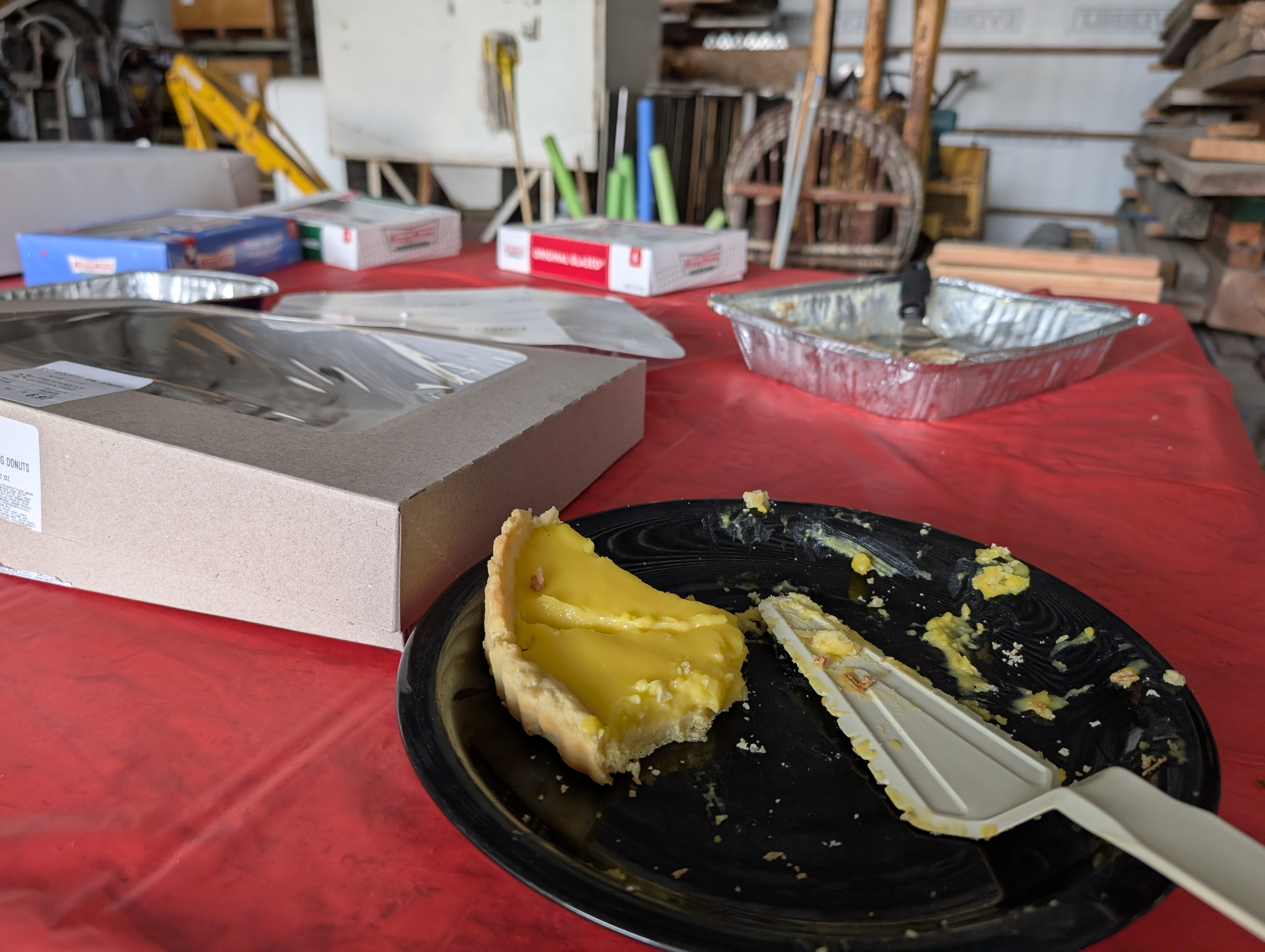 But once I was firmly down and parked, I was welcomed in like a new-found cousin at his first family reunion. I was told that there might still be some hamburgers left over from lunch, and if not, there were brownies and more than a couple of pies that needed prompt attention.