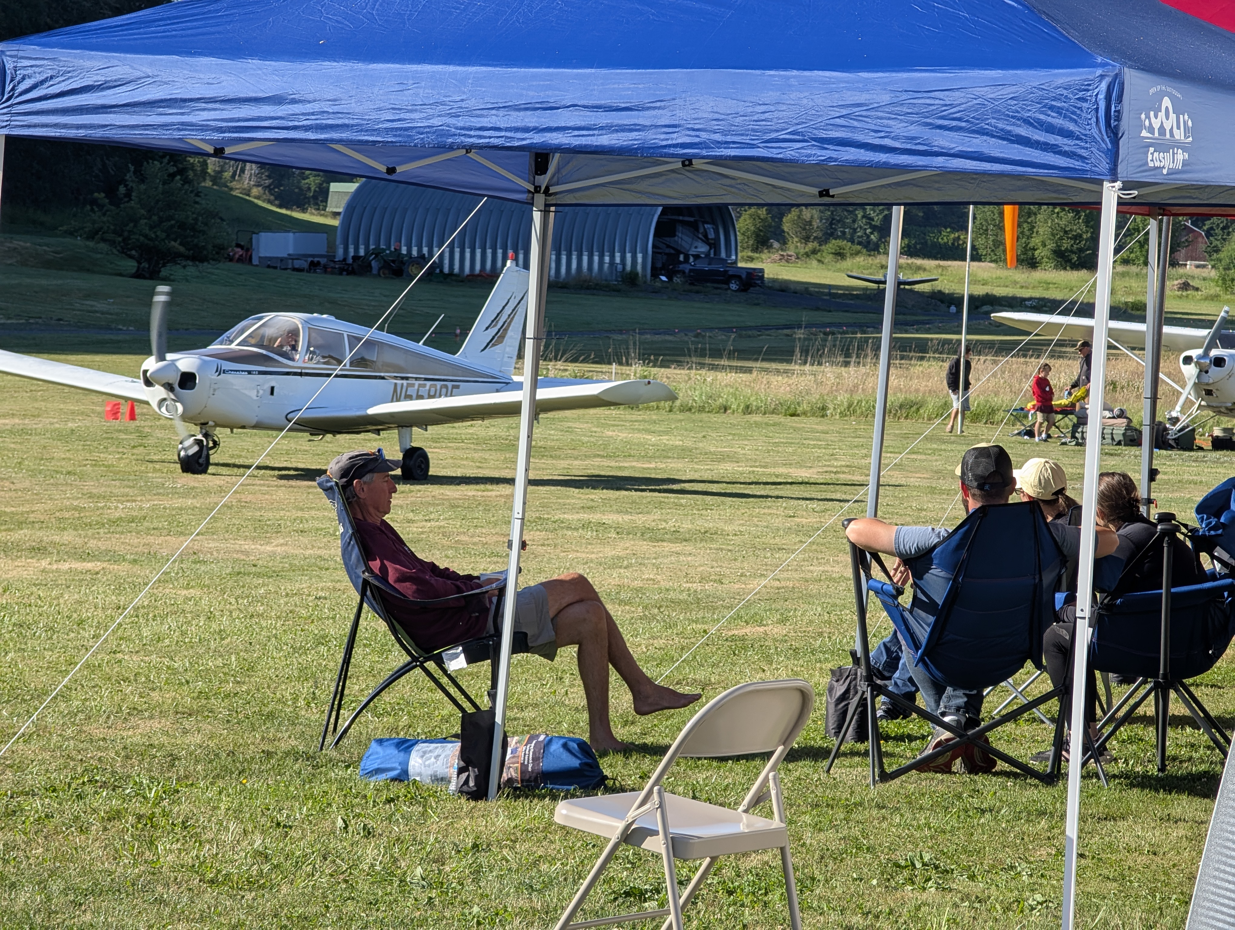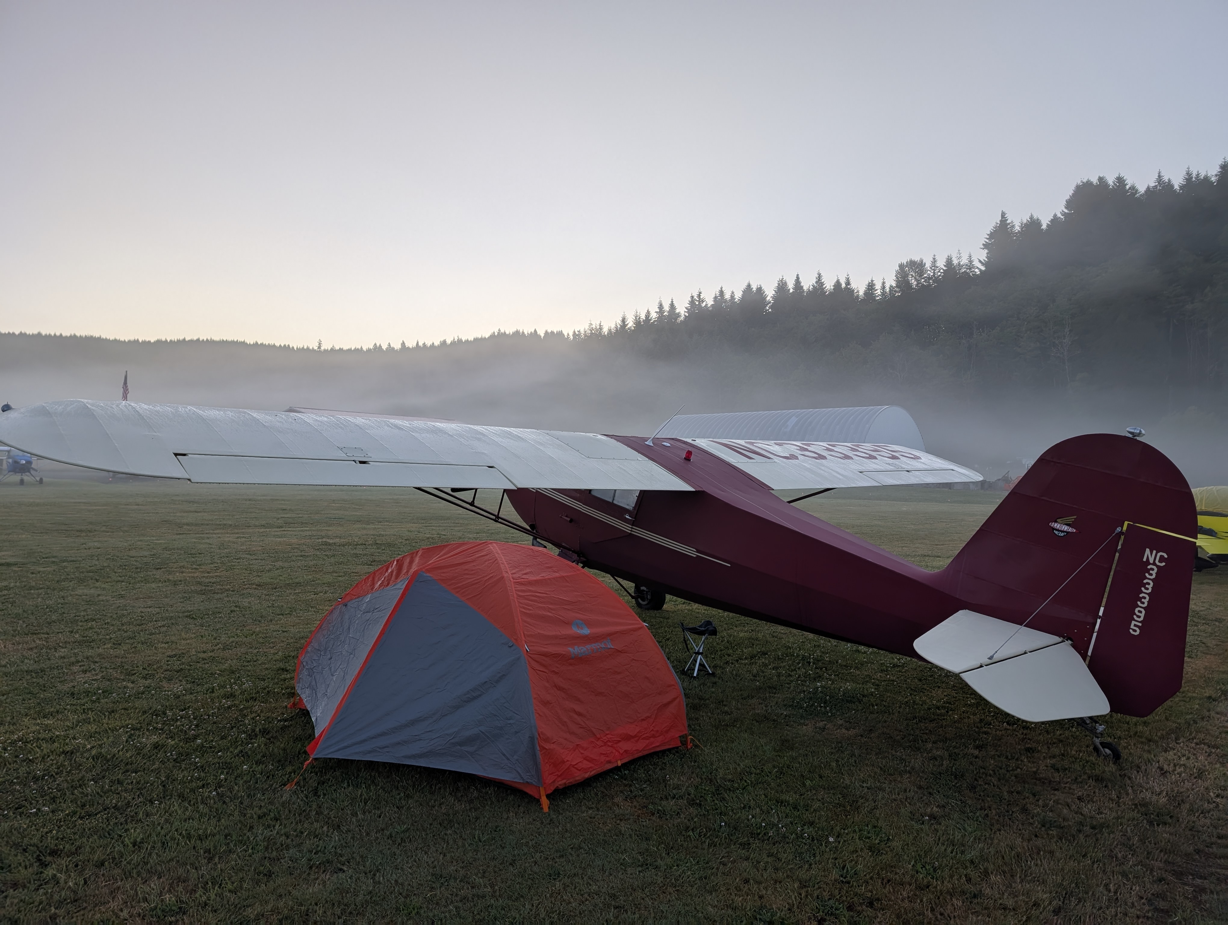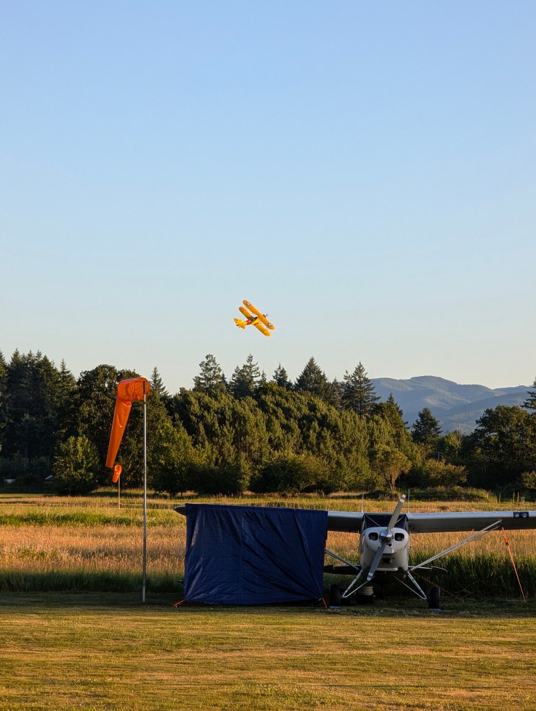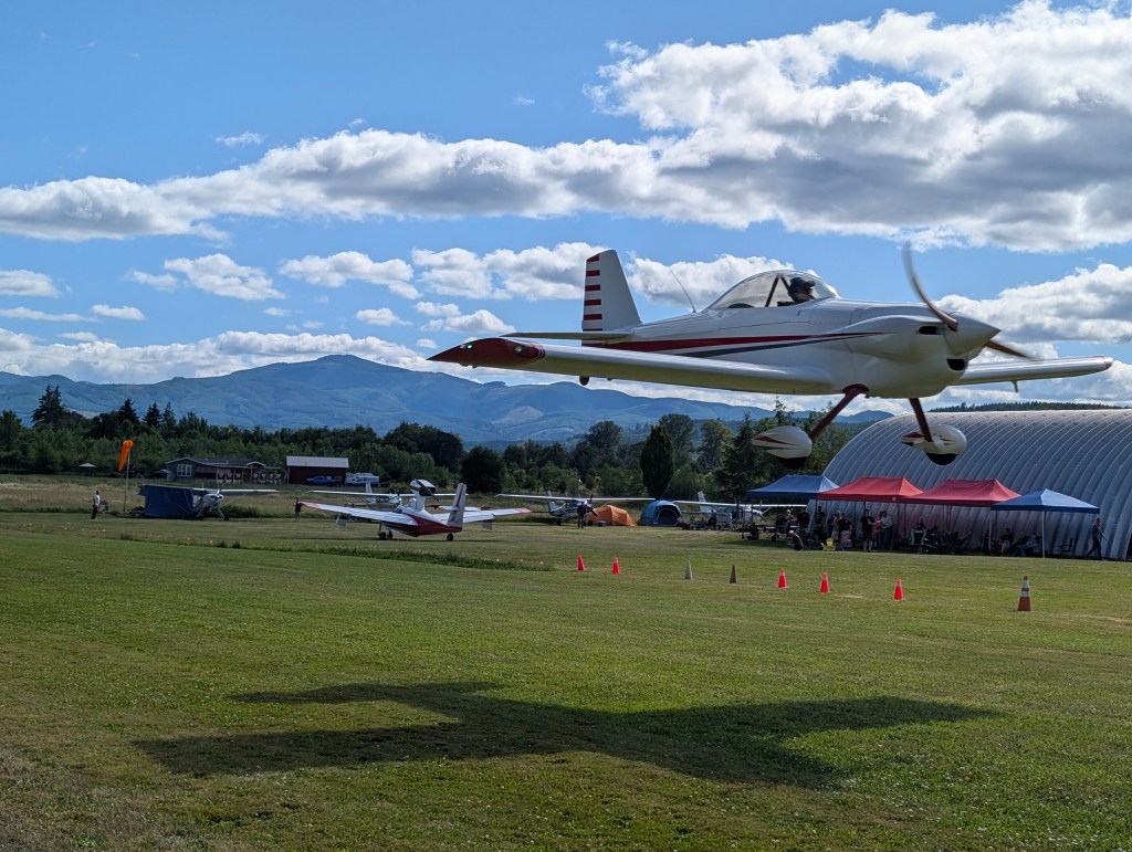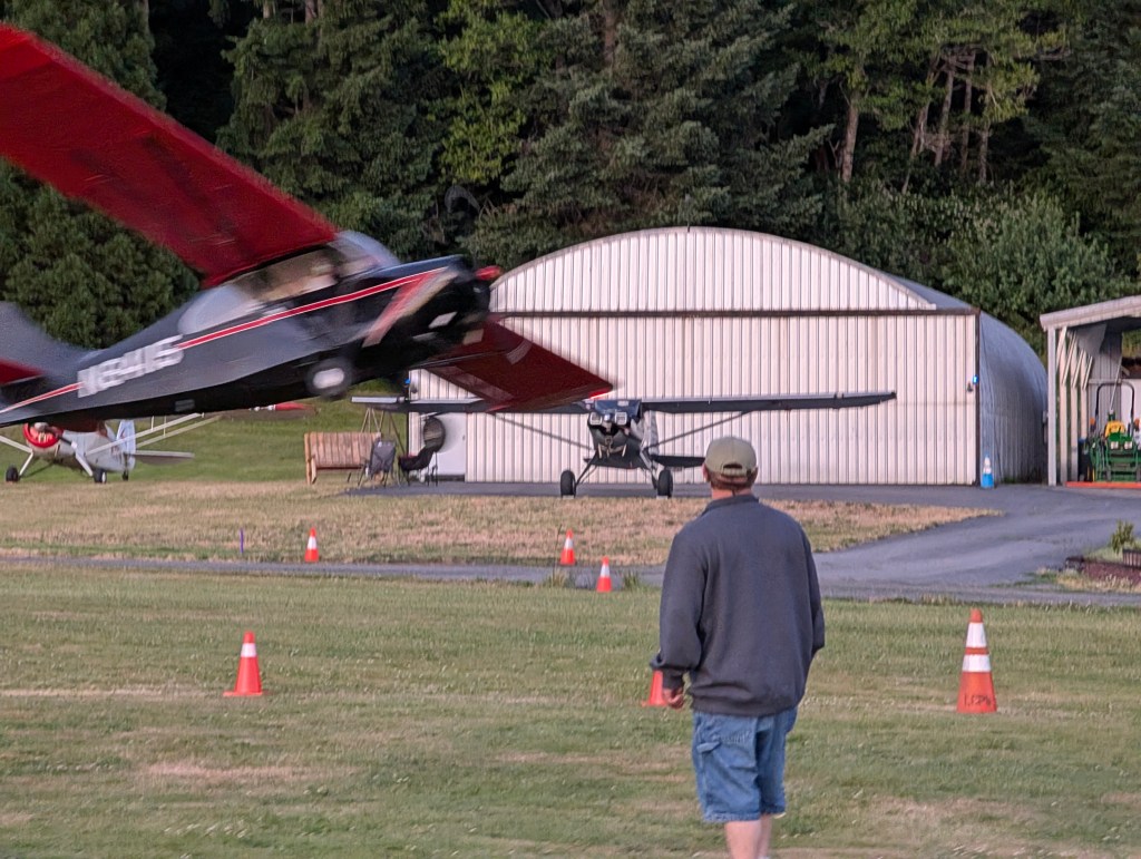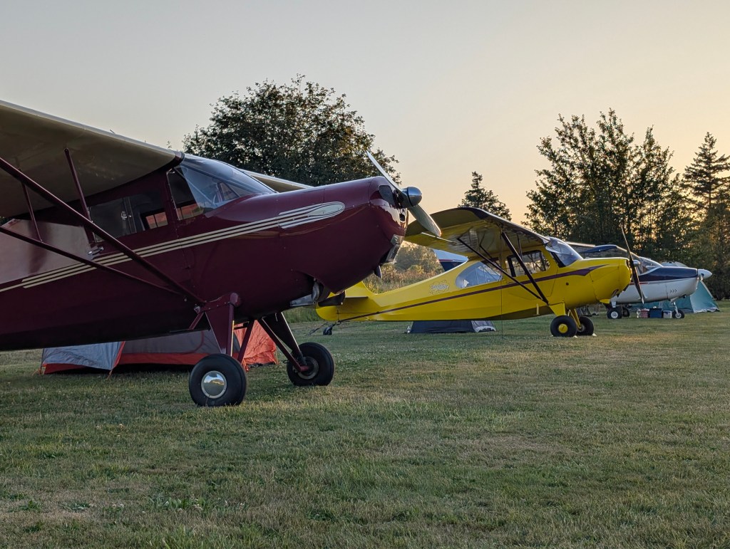 Morning at any fly in always begins with someone flying “dawn patrol,” taking off with the prop flat, at full throttle to generate the most possible noise to wake everyone up. But not here. Someone did depart around 7:00, but by luck of their choice of aircraft or dint of departure technique, I wasn’t even sure it was a plane I was hearing until I saw him turn out to the west.