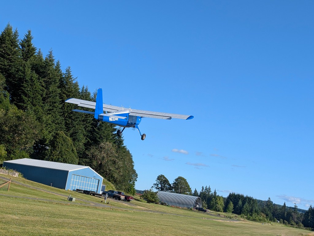 Curtis is not a trivial field to fly into. At 2100′, it’s not particularly short, and the grass is well-maintained, but there’s a big imposing hill climbing out past the north end of the field, and big tall trees (albeit with well-positioned notches) to the south. So you need to watch the wind and mind the store on your way in.