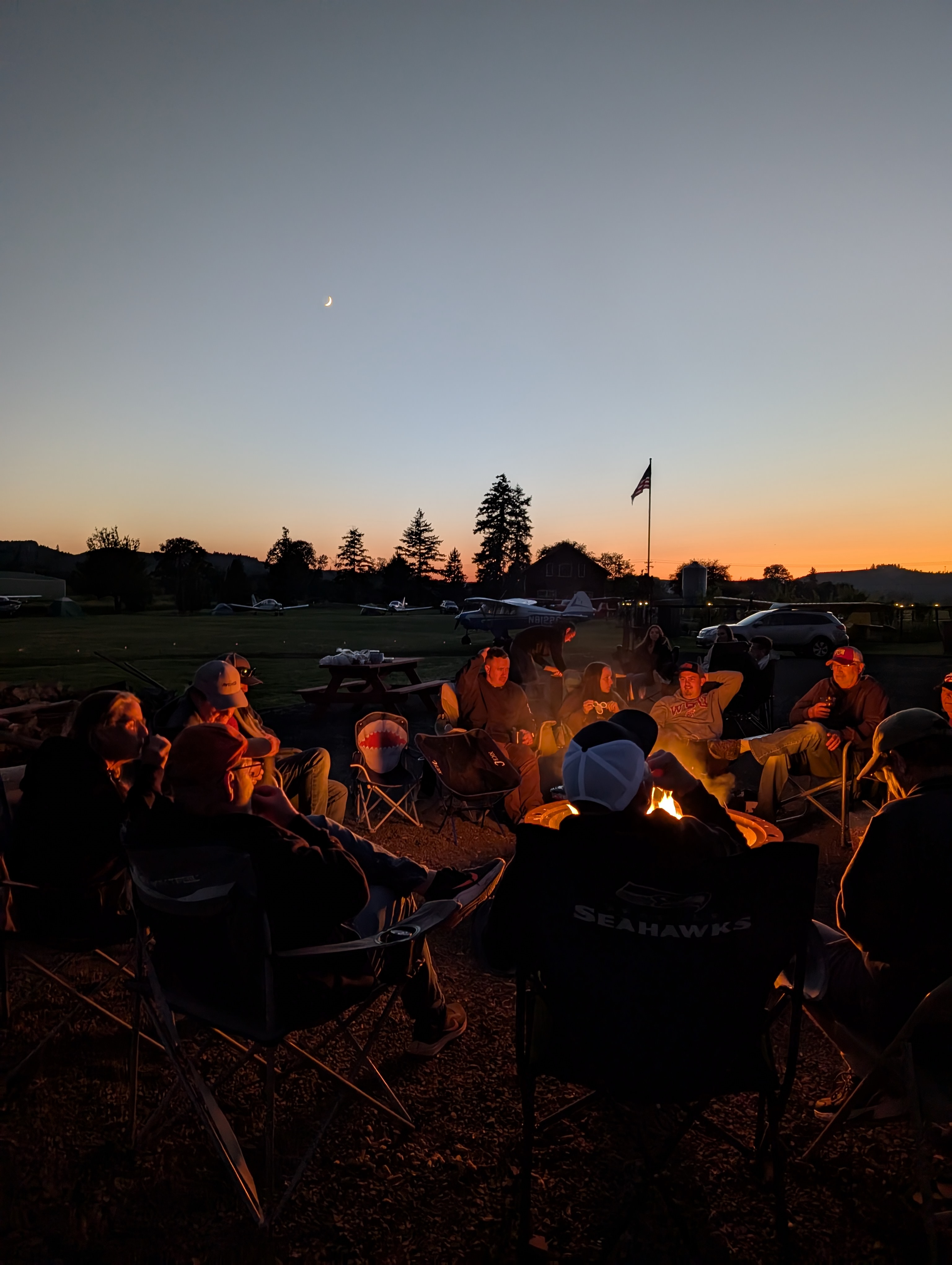 More conversation, more take-offs and landings and flybys as the sun nudged the horizon and the golden hour set in. Then there was word that the fire pits – massive iron cast things salvaged from old mining equipment – had been fired up, and we all shuffled over and continued the conversation.