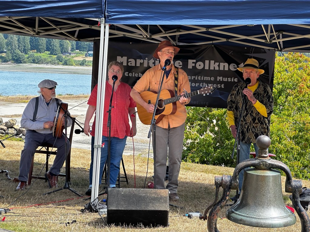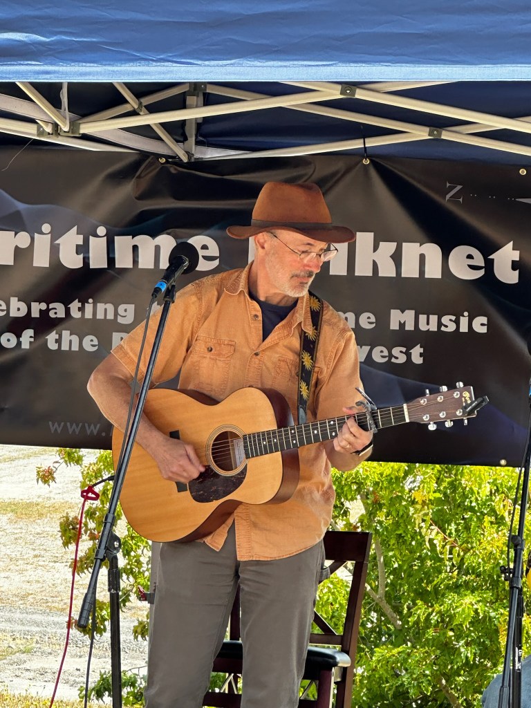 Port Gamble was a hoot. Jay, Emily and I played well. Sounded good, I think, and got a great reception. The solo performance of my prizewinning song (watch it here), went off without a hitch, and I was gratified by the sound of those in the audience who knew it singing along with the chorus. Got to lead one of my favorite contemporary maritime songs – Rod McDonald’s “Sailor’s Prayer” – with the whole musical complement of the festival at the end.