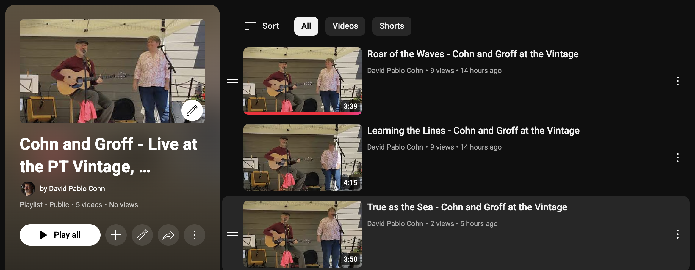 Finally, if you’d like more of a taste of Emily and me playing, here’s the entire set from The Vintage last week: