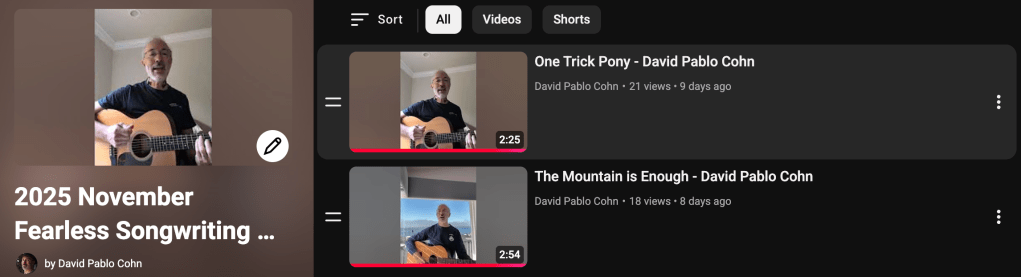 But there ya go. Here’s a playlist of the songs, if you’re interested, along with the prompts: https://www.youtube.com/playlist?list=PLQ9ox1v1ObtxaPtQ0_xYXqO_xGwaMup87