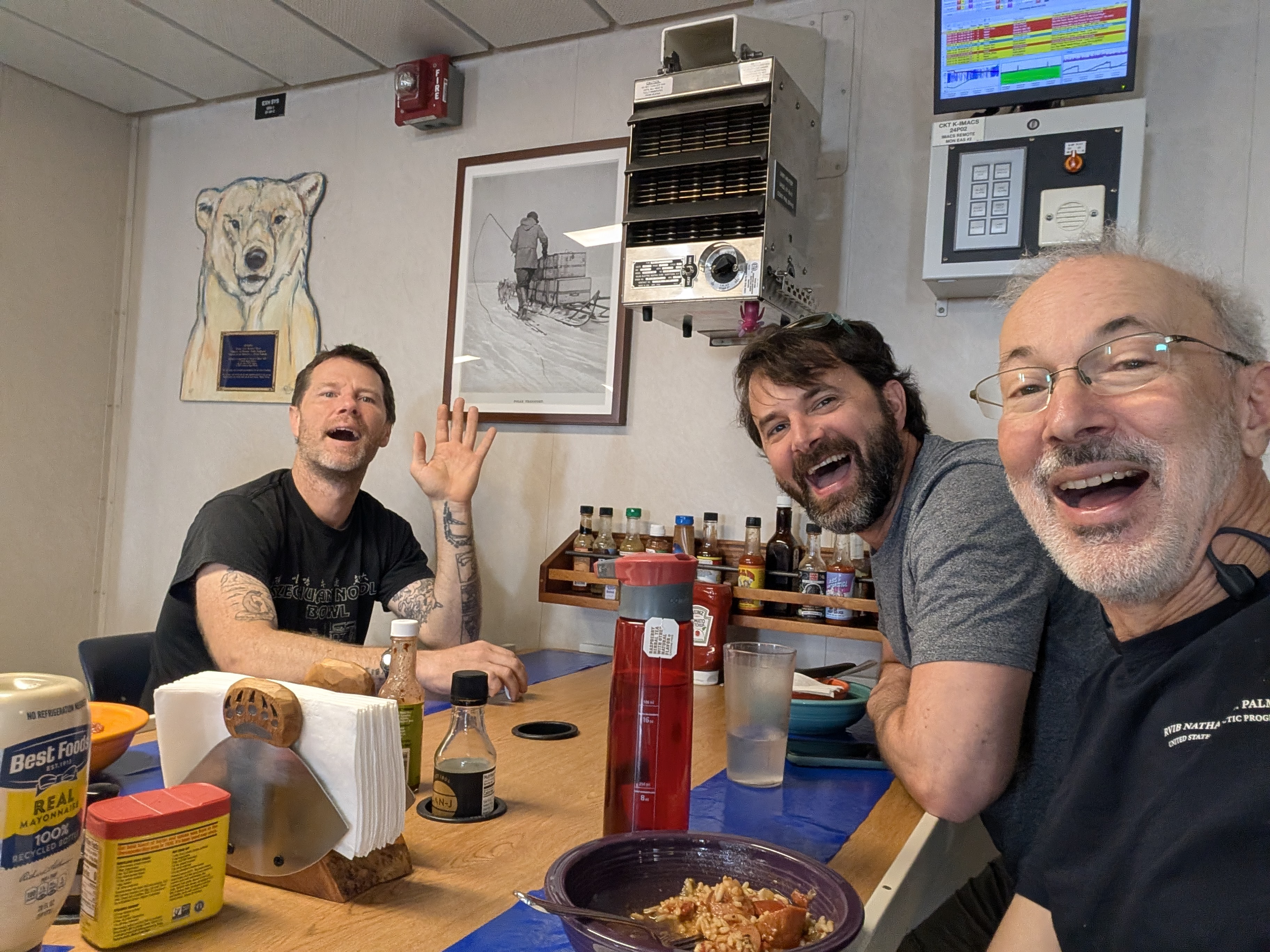 Birdwatching has been unusually engaging. Not because of the immense variety, but because, for the most part, there are none here. I mean none. Eerily none – you watch the horizon for hours, and – none. Seven days out Lily sent a team-wide message on our chat channel: “Albatross off the bow!” And last night, hanging out with Clay, Genevieve, Robin and Amy (yes – that Amy) we saw a petrel. Maybe a couple? It’s hard to tell when they disappear behind the swell, and you see another bird a few minutes later. A couple flying in loose formation, or an SBA (same bird again)? We’re not part of a formal survey, so it’s not a pressing question, but it makes for conversation to break up the silence.