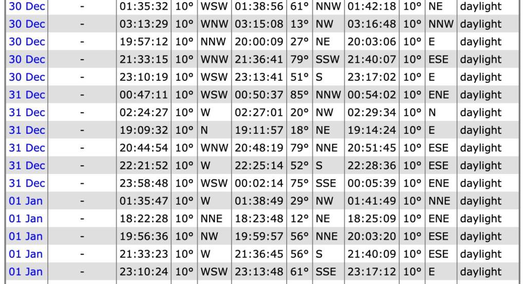 And here was the frosting on the cake: as the Wikipedia entry explains, “The area is so remote that, since no regular marine or air traffic routes are within 400 kilometres (250 mi), sometimes the closest human beings are astronauts aboard the International Space Station when it passes overhead.” It didn’t take too much Googling (thank you, Heavens-Above.com) to determine that, improbably, at 23:58 UTC on New Year’s Eve, the ISS would be sweeping by on an improbably straight-overhead pass, with a minimum slant range of just 266 miles.
