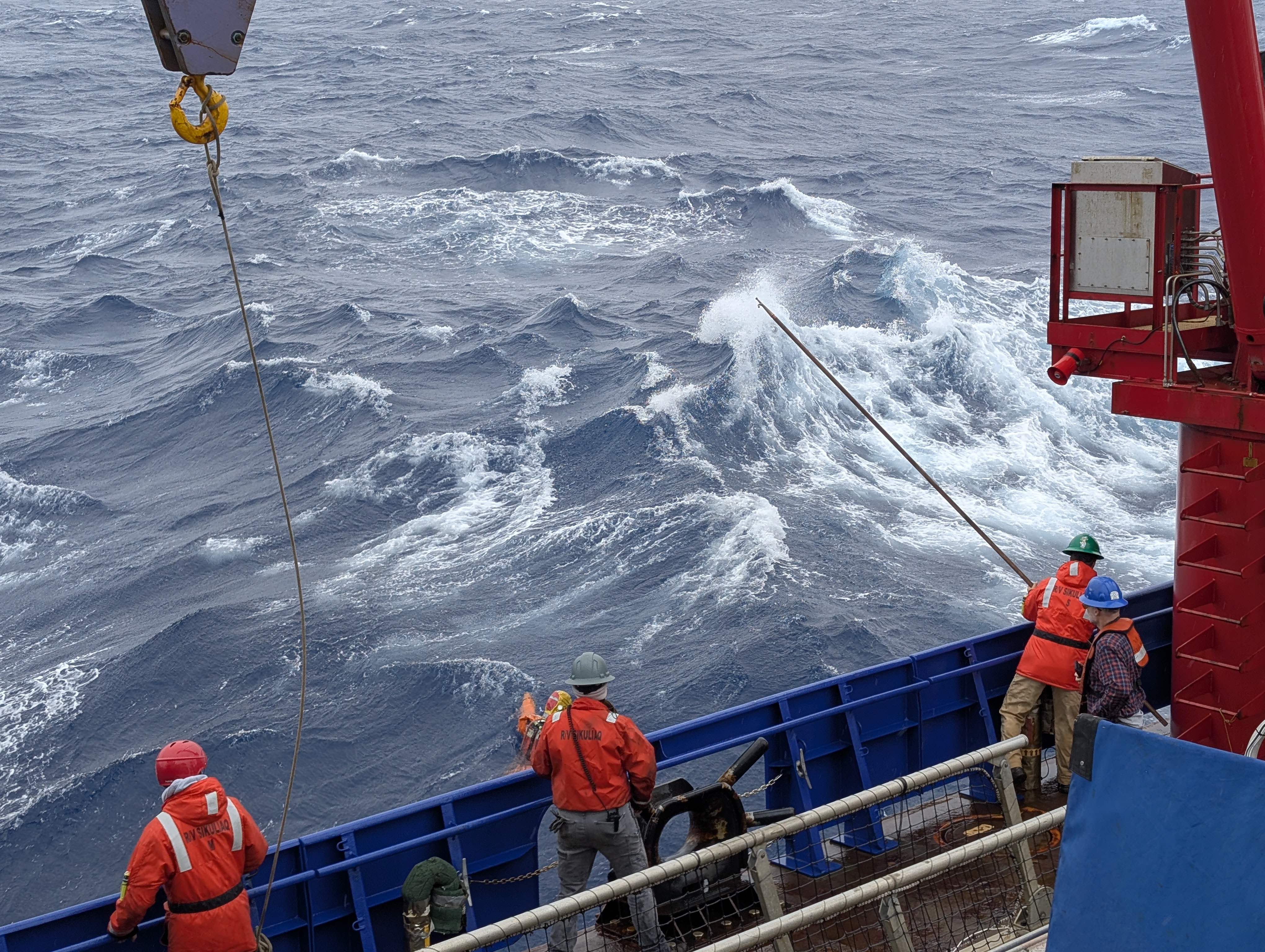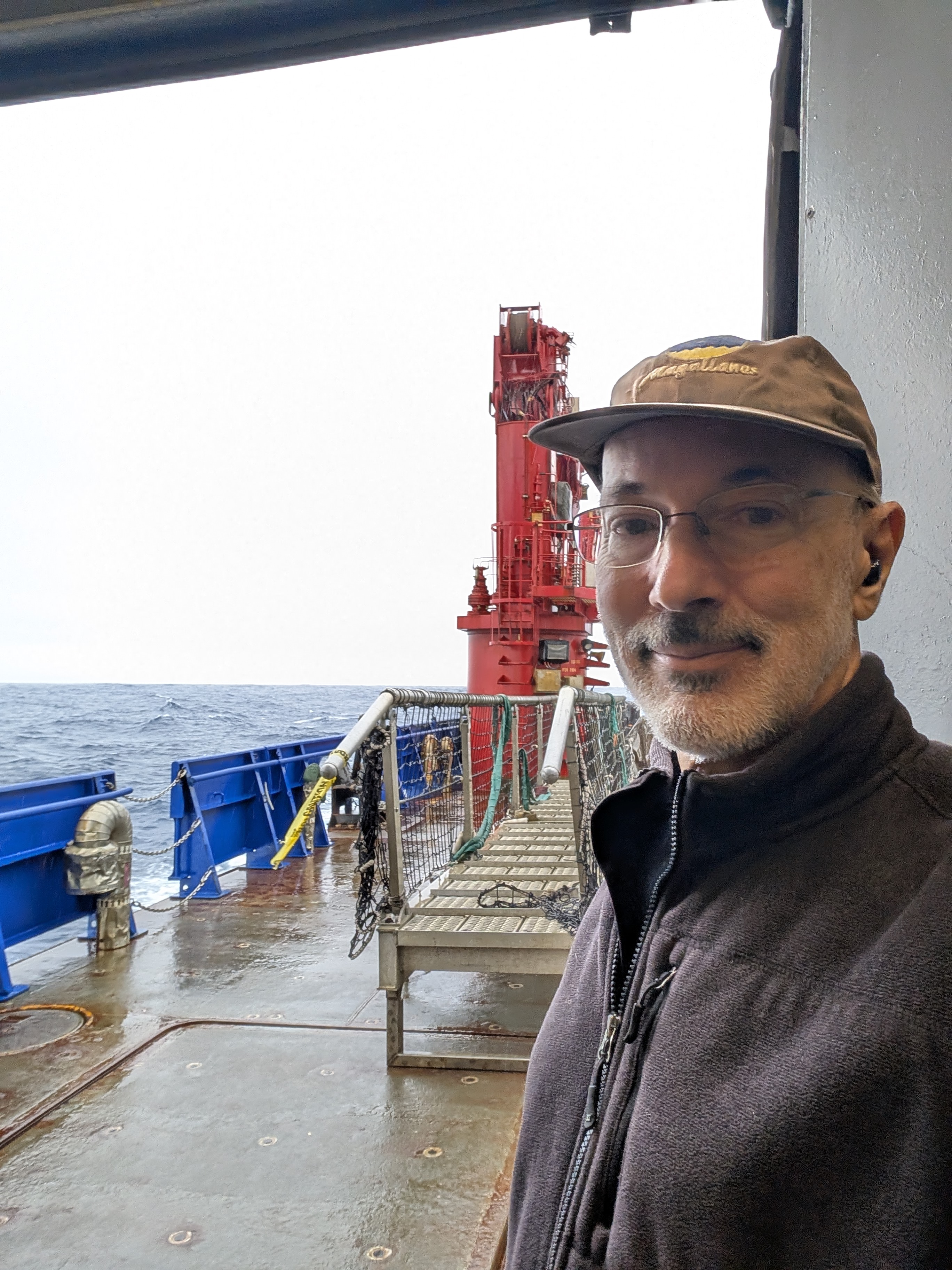 We continue bob and sway our way southeast toward the flatwater respite of the Strait of Magellan. We’ve had tailwinds much of the way (yay!) but the sea has generally been “beamy.” That is, the swells coming from abeam, the side of the ship, which keeps us, as I said, bobbing and swaying. Nothing like those crazy YouTube videos, mind you, but getting from one end of the galley to the other still involves planning what feel like suborbital trajectories. And spending one’s days squinting at a little glowing screen in a windowless lab below deck in these conditions is also a recipe for spending more than one afternoon flat on my back in my bunk with lights off, eyes closed, and Beethoven streaming on my earbuds as I contemplate the question of when (if ever) is really the right time to wean myself away from my seasickness meds.