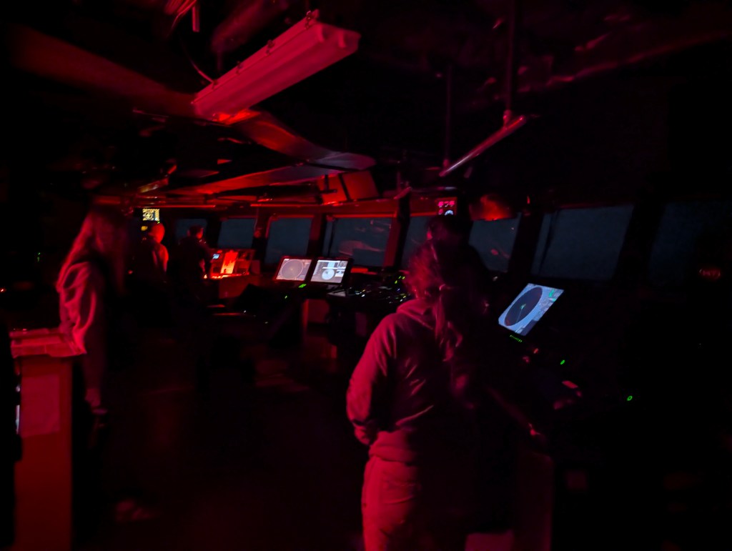 Captain has a succinct way of conveying information over the ship-wide PA when he deems it necessary, and he wasn’t wrong. He was preparing to spin us around to get back on heading between troughs after our POB exercise and…we were well advised to heed his recommendation. It has been sporty out here.