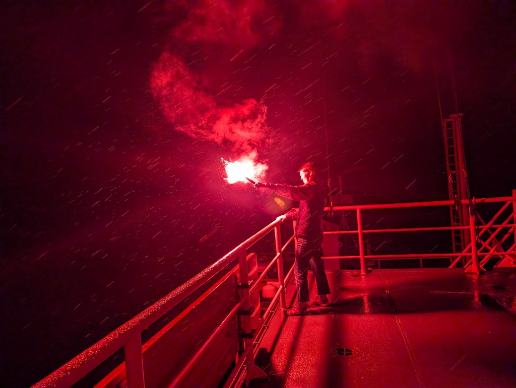 It turns out that it’s harder than it looks to pull up alongside someone in the water when you’re trying to maneuver a 4000 ton vessel in rain and rough open seas, even when that someone is wearing a full float coat.