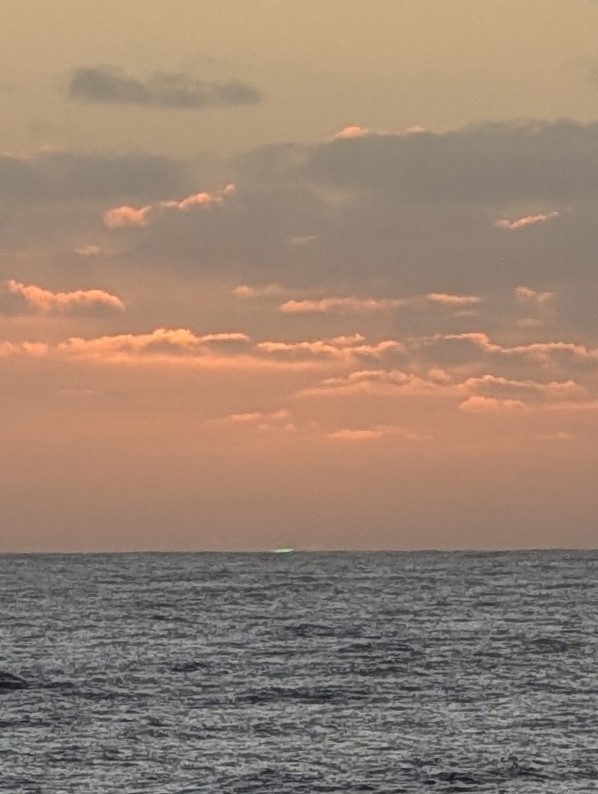 The first was – yes, at almost 63 years, I have finally seen “the green flash.” I’d been warned that it would be subtle, ephemeral, almost liminal. That I might not be sure I’d seen it.