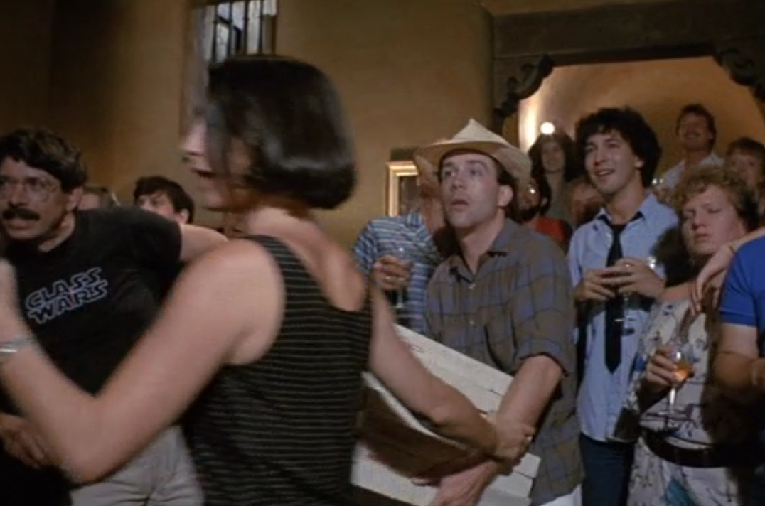 There’s a story here. I’ll tell it some day. In the meantime, here’s a screenshot from the movie – that’s Hulce with the hat and fake boxes of pizza, and me with the skinny 1980’s tie. God, we were young…